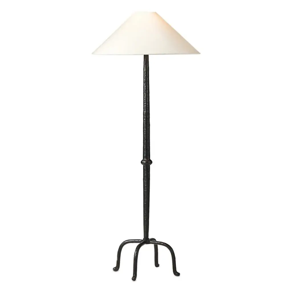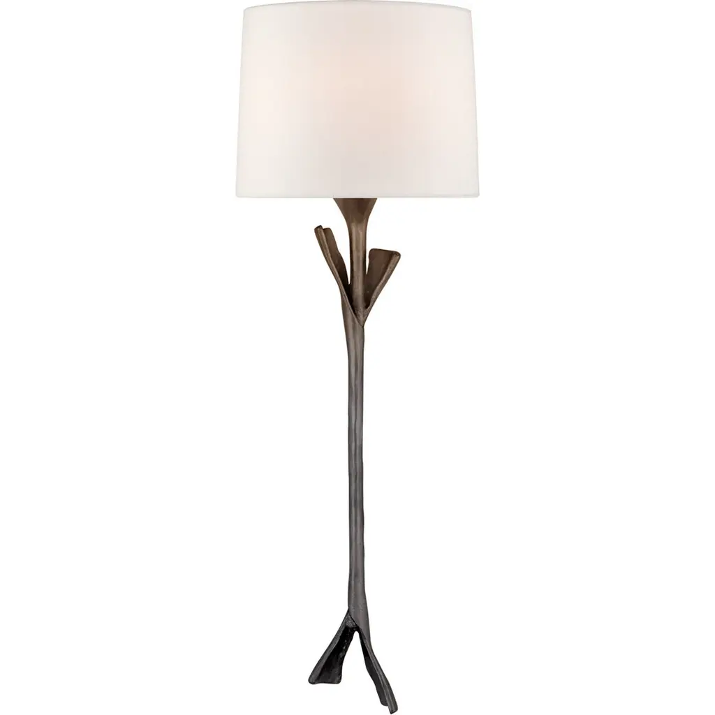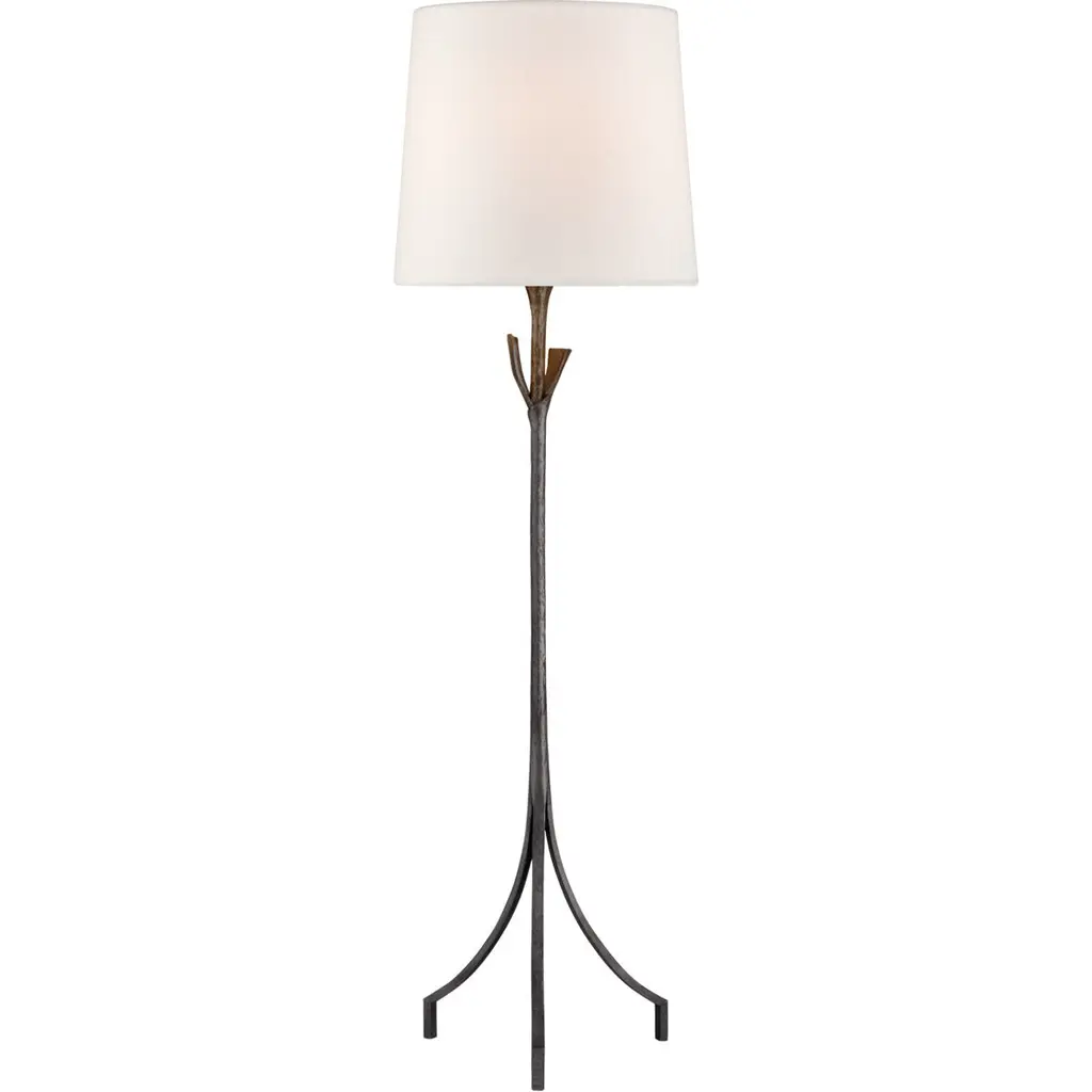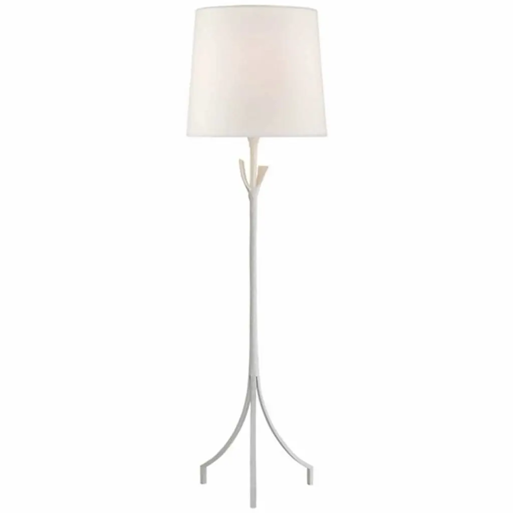 Designed to resemble a stylized branch, this floor lamp is crafted of steel in a gleaming gold finish and topped with a white linen shade. Hardwired.