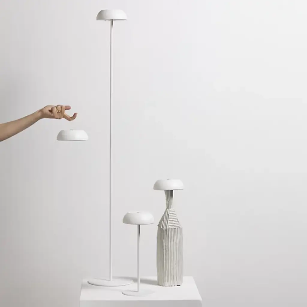 Minimal and multifunctional. While the Float Rechargeable LED Floor Lamp from Axolight appears like a simple and straightforward floor lamp at first glance, this fixture offers a smart and sophisticated functionality ideal for any environment. A flat base steadies its slender steel body as it rises to a rounded aluminum shade. Its integrated LED can be charged and emit up to 9 hours of light while a soft-touch top controls its five dimmer settings.