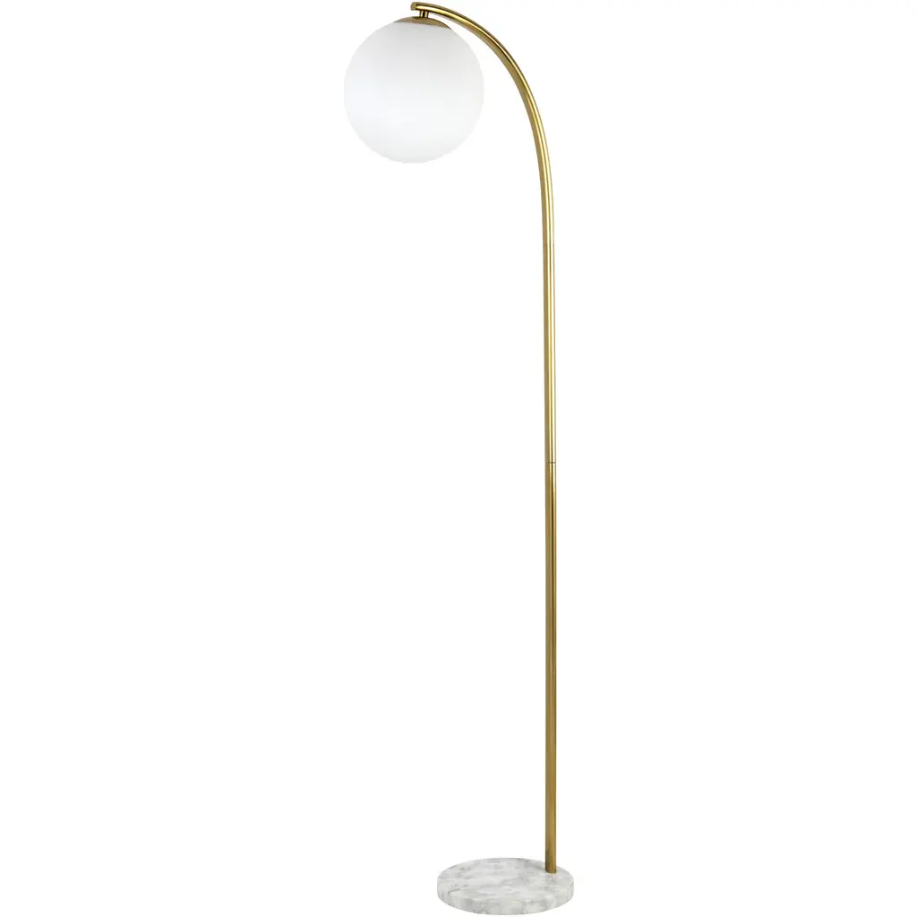 Floor lamp 06 by Magic Circus EditionsDimensions: D 25 x H 140 cmMaterials: Carrara marble base, smooth brass tube, glossy mouth blown glassDimmable version available.Rethinking, reimagining, redesigning familiar objects that we look at every day without ever really seeing them and using light to tell stories, this how Marie-Lise Féry sees her work. Offering a new take on our urban heritage, changing our perspective through her work on scale and usage. Since 2015, Magic Circus Éditions has been setting the world of lighting ablaze, creating airy, playful and magical designs that merge retro with sleek and contemporary. A free-spirited antiquarian, founder Marie-Lise Féry draws inspiration from the world of cabarets and the magic of the circus to give shape to imaginative, fun and playful collections. The air of magic she breathes into her work reveals a wealth of interpretations and widens possibilities for creative interiors. The combination of traditional know-how — outstanding craftsmanship — and her imaginative take on historical, everyday objects lends an unexpected and charming quality to her creations.Féry’s lights are designed just like magic lanterns — precursor to modern-day cinema —, inspiring wonder through oversized, seemingly weightless compositions and understated references. Each collection has its own inspiration: the first models of street lighting for Collection 01; the happy memories of funfairs, sweets and balloons for her latest collection Balloon; the Far East for Collection 02; and the colourful, carefree spirit of the 70s for Pop-Up, released in 2019. Magic Circus Éditions draws on airy designs, dream-like inspirations, colours and fun to create a sense of enchantment.Magic Circus Éditions founder Marie-Lise Féry was born in Paris. After studyingart business, she moved to New York to start her career. Fascinated by the city’s architecture, she found an endless source of inspiration in the Big Apple’s monumental decors. Returning to France to settle down in Lyon, she opened an antiques gallery named Un Château en Espagne, and started telling her own stories through objects she gleaned on markets all around the country. A way for her to perpetuate her mother’s motto: “Objects with a soul will always belong”. Since 2015, the year she established Magic Circus Éditions, she has moved on to lighting as a new medium for telling her stories, bringing the magic of the show into home interiors. With her love for the circus, turn-of-the-century cabarets and music halls, Marie-Lise Féry’s love of unusual objects has remained strong, but now prefers to focus her attention on pieces she has imagined herself. With a fun and light-spirited approach, she creates a bold visual effect that elicits instant attraction. She collaborates with some of Europe’s greatest artisans, from Prague and Murano to Clermont-Ferrand, working for instance with a Czech company specialising in sculpting glass using a diamond-blade saw, or an auto body shop renowned for their work with lacquers. The refinement of shapes and finishes, bespoke designs and technical excellence all contribute to creating pieces that inspire surprise and wonderment. In the manner of Wes Anderson in Grand Budapest Hotel, blending together elegance, humour and unexpected details, her designs never fail to surprise. Attentive to the effect of her designs both in daylight and at night, Marie-Lise Féry takes us on a journey through space (from outside to inside) and time (from yesterday to today).