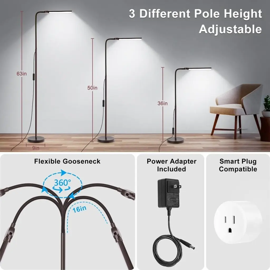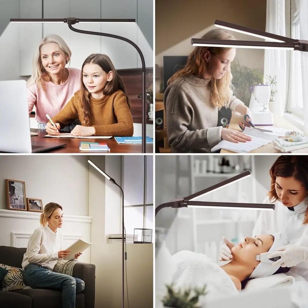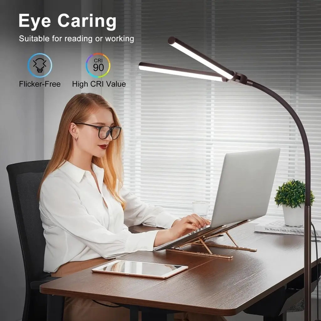 Floor Lamp, 15w/1800lm Bright Led Floor Lamp With Double Head - Brown