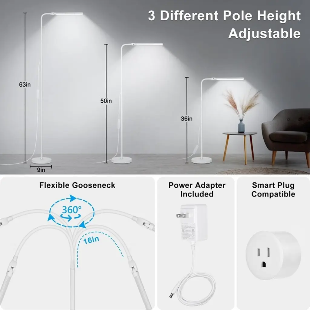 Floor Lamp, 15w/1800lm Bright Led Floor Lamp With Double Head - White