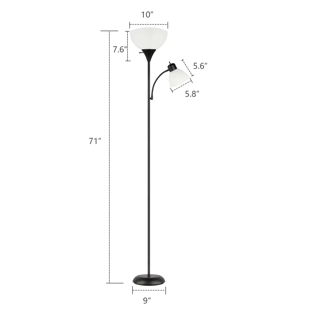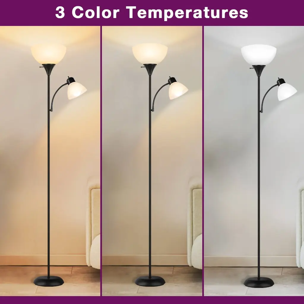 Floor Lamp Adjustable Reading Light, Modern Dimmable Standing Lamp - N/a - Black