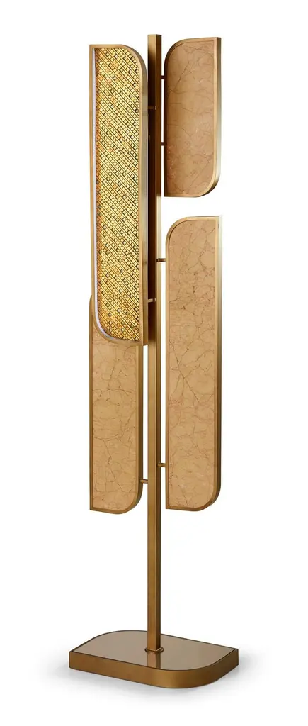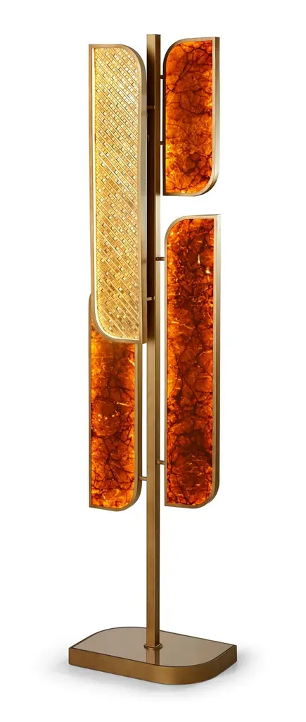 Floor Lamp Brass Frame Antique Bronze Or Silver Finish Decorative Insert Backlit