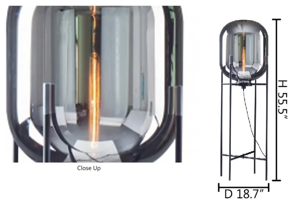 This floor lamp is in a matte black finish. The frame is made out of metal and it comes with a large smoke color glass shade. This lamp is a plug in with an ON/OFF switch. This floor lamp is great for chair side reading and general rooms illumination. This floor lamp can be used in living room and bedroom.Lighting Information:UL CertifiedUL certification type: BothNot ETL certifiedBulb(s) not includedNumber of bulbs: 1Bulb type: E26Max wattage: 60WPLUG IN WITH ON/OFF SWITCHPARTIAL ASSEMBLY REQUIREDMATERIALS: PLASTIC, METAL & GLASS