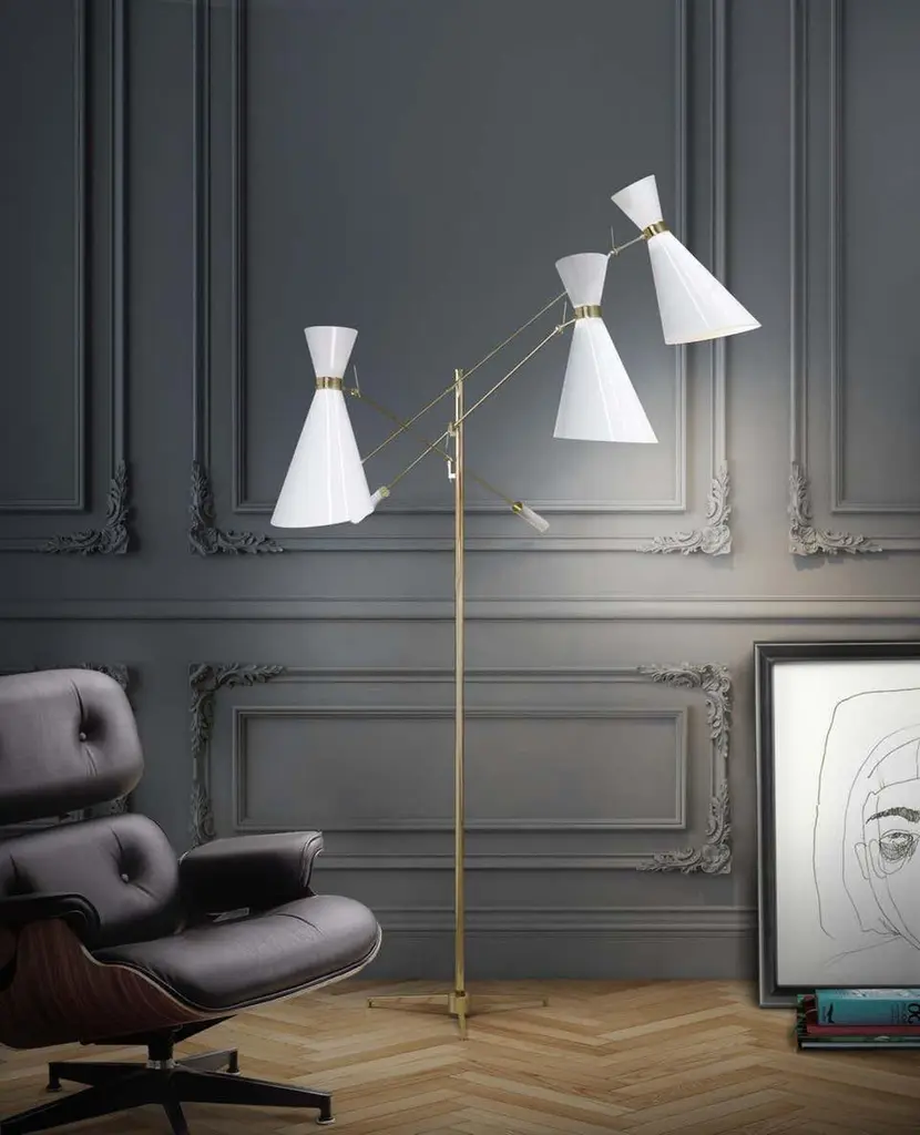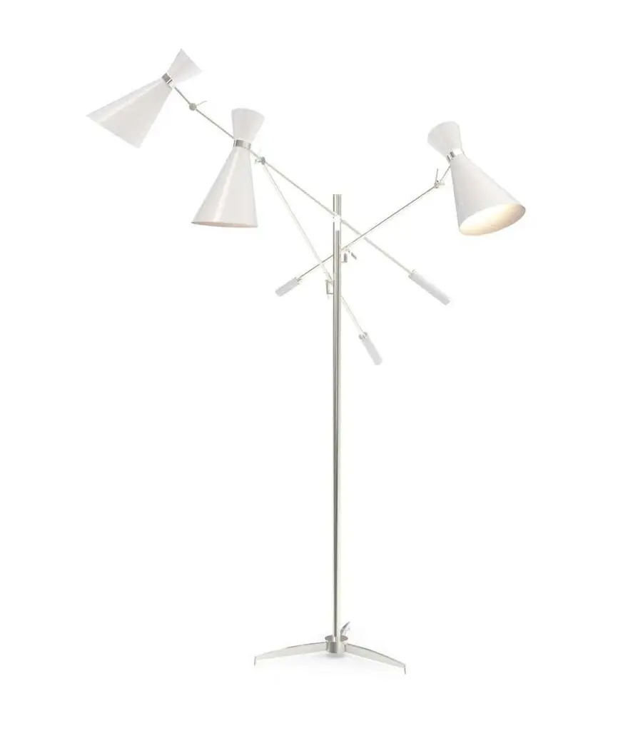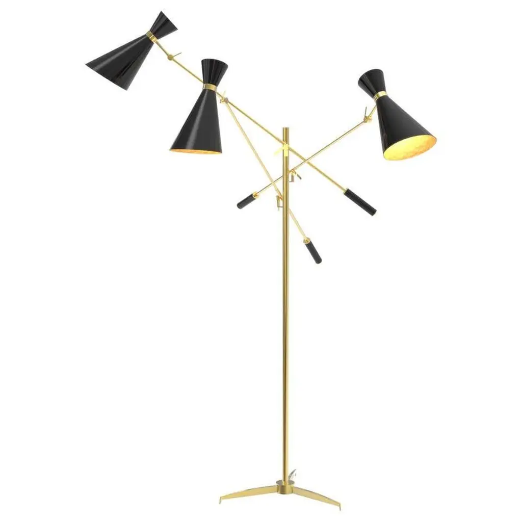 Floor lamp in brassEstimated production time: 6-7 weeks3 x E27 bulbs (included) (E26 for USA not included) max 40W per bulb.Materials and techniquesHandcrafted brass, aluminum, steelDimensions:Height 70.87 in. (180 cm)Width 51.19 in. (130 cm)Depth 39.38 in. (100 cm).