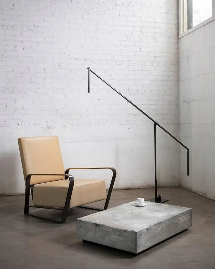 Floor lamp in darkened brass with LED. Custom finishes available.