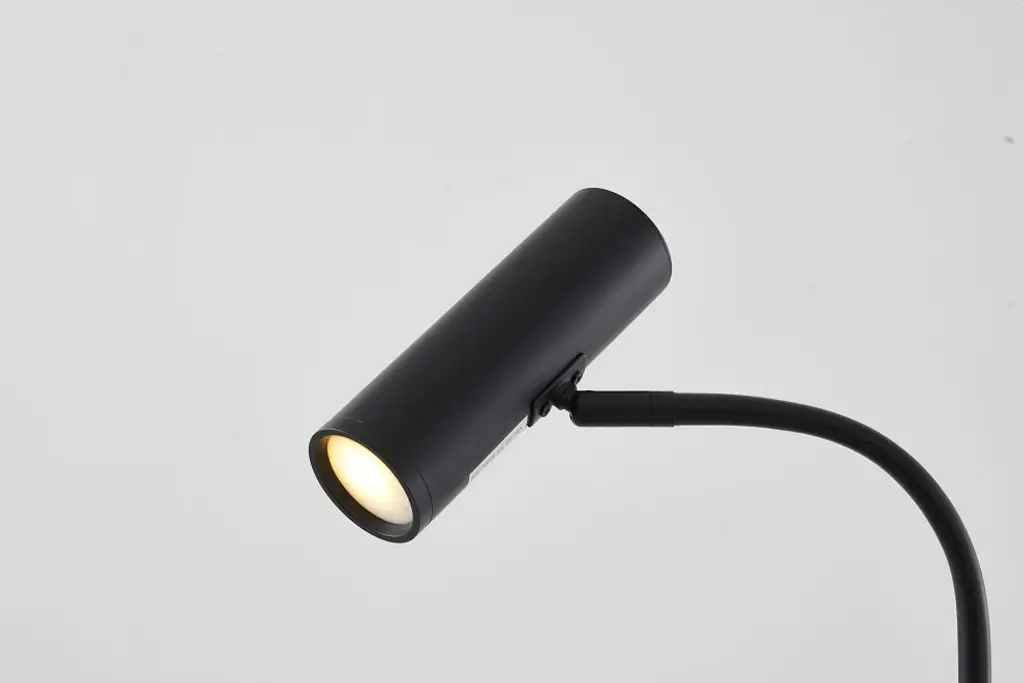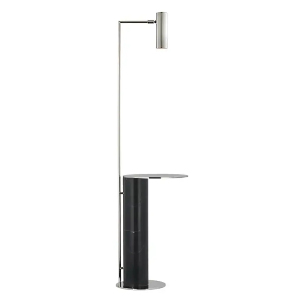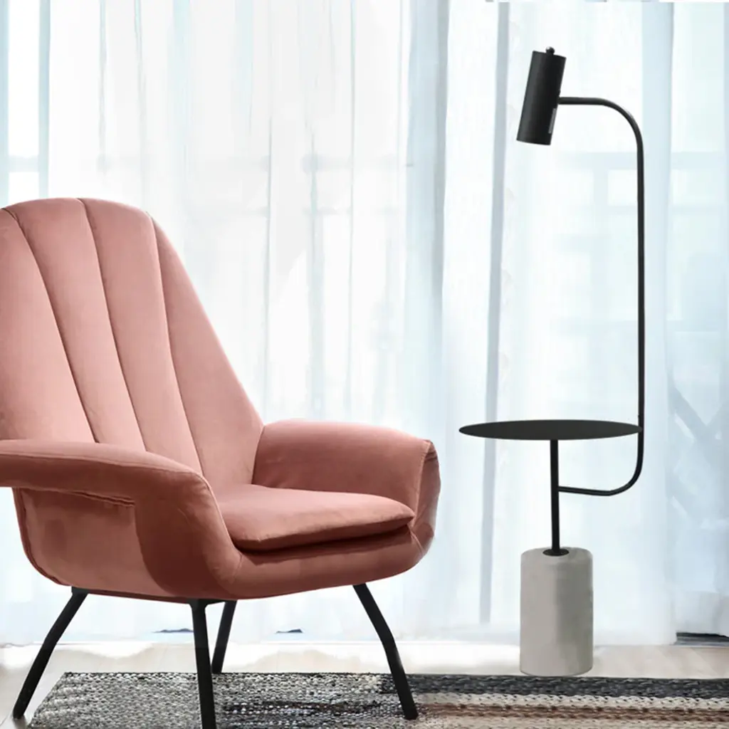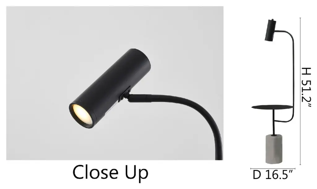 This exquisite floor lamp is in a black finish. The frame is made out metal, and it comes with a concrete base. It is great for chair side reading or general room illumination Bulb Type: GU10 Wattage: 50 Number of bulbs: 1 Bulbs Included: No