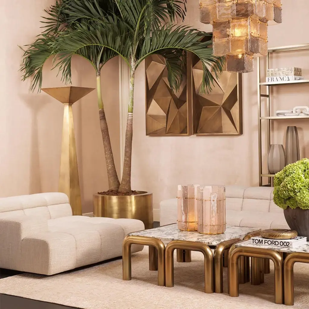 Floor lamp, vintage brass finish and black granite base, designer floor lamp.Radiate sophistication with this floor lamp, the epitome of luxury with its vintage brass finish.Be seduced by its timeless elegance and let this floor lamp illuminate your space with refined grace and captivating charm.L. 50 D. 50 H. 191 cm