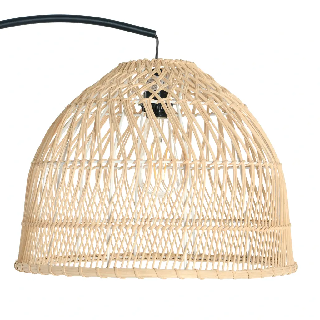 Floor Lamp With Marble Base And Rattan Shade - Black And Cream