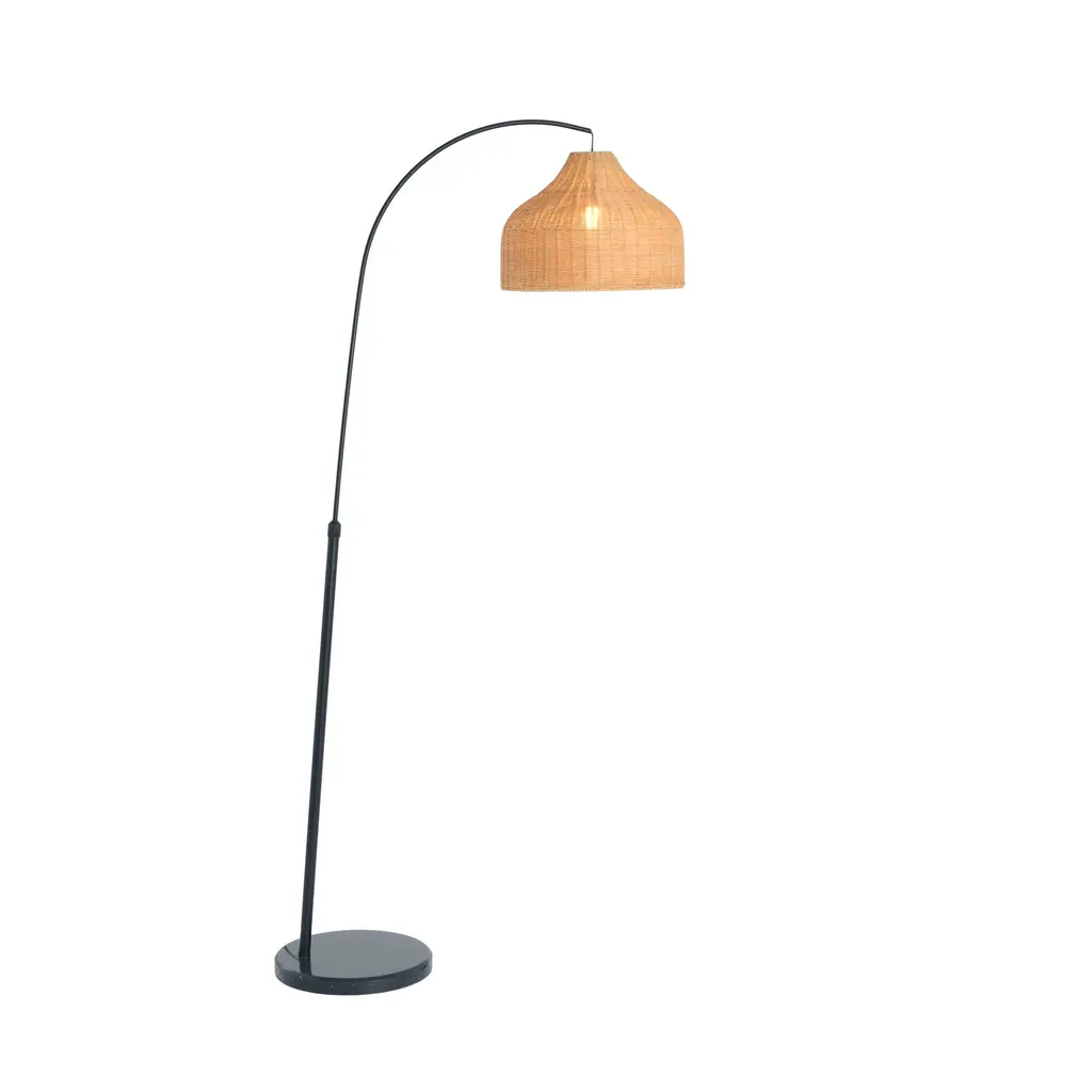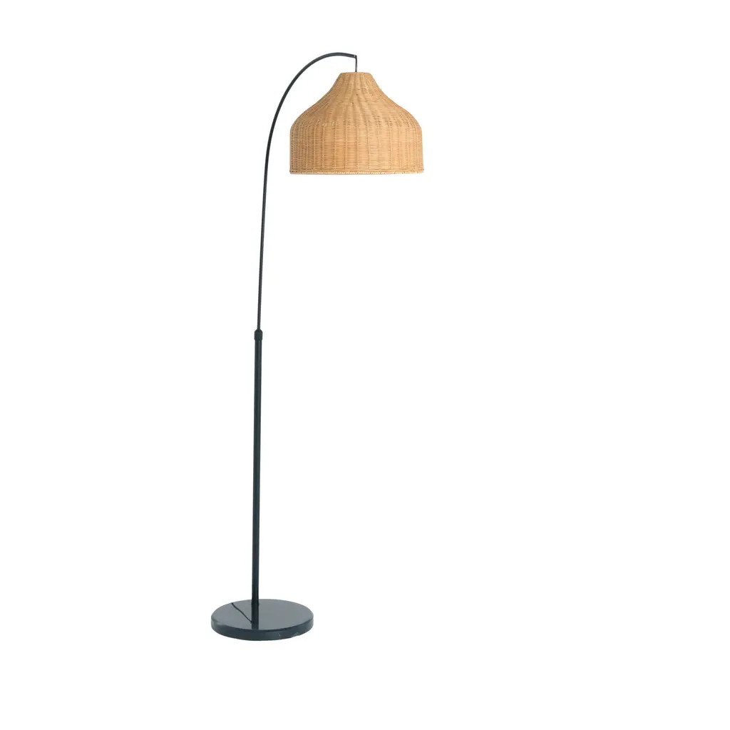 Floor Lamp With Marble Base And Rattan Shade - Black And Natural
