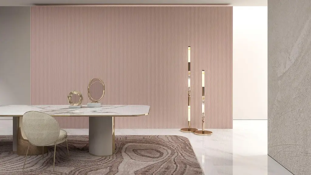 The Katana Floor Lamp, part of the exclusive Katana collection, combines Vetrite technology with minimalist design. With a beautifully finished metal frame, this luminaire features an opalescent Vetrite tube diffuser, internally illuminated by LEDs. The elegance of its lines and its resistance to shattering make it ideal for luxury environments and public spaces, creating a refined and modern lighting.