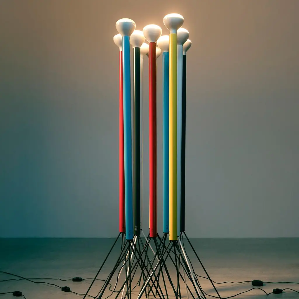 Flos Luminator Floor Lamp in Red with Iron and Metal Frame by Achille and Pier Giacomo CastiglioniFloor lamp providing indirect light. Bulb with reflector. Iron stem with painted finish. Painted galvanized metal legs.Additional Information:Material: Iron, galvanized metalColor: RedEnvironments: Indoor dry locationVoltage: 220-250VPower: 105WDimensions: Ø 2.3 x 23.6 W x 74.4 H inchCord length: 2800mmWarranty: 2 YearsAvailable in other color options: White, anthracite, light blue