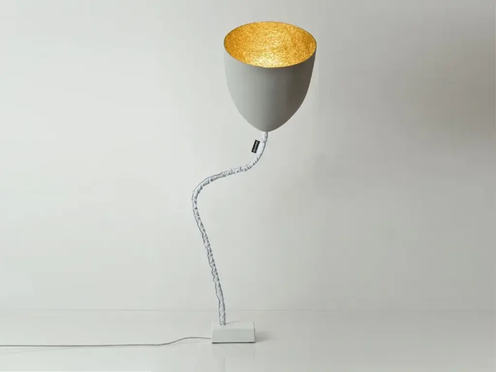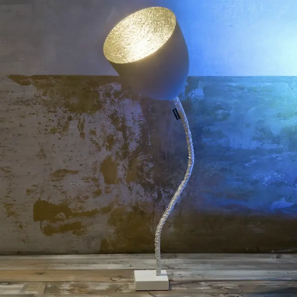 Get the industrial look of cement without the weight. The In-Es Art Design Flower Cemento Floor Lamp is an adjustable spot light made from designer Ocilunam’s special blend of resin and fiberglass (Nebulite®). Painted to mimic cement, the interior showcases the fibrous texture of the material with different colors, and the cord is covered with bunched nylon that also features the “in-es.artdesign” logo near the shade.