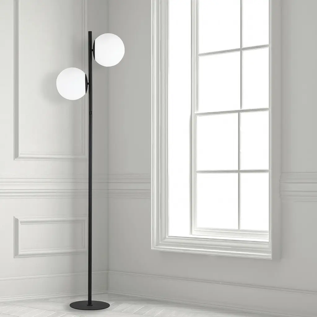 The bold aesthetic of the Folgar family of lighting attracts attention as it enhances your décor. The look is clean and bright, and will add welcome curves as well as style to contemporary or minimalist furnishings. The metal base and rod in your choice of finish holds two offset glass globe lights, providing illumination in both directions. White opal glass finish softens the light to a face-friendly glow. Folgar lighting will add a pop of interest in your living room, bedroom or a stylish office space.