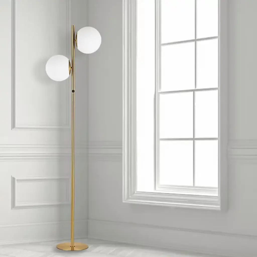 Presented by Dainolite, the bold aesthetic of the Folgar Floor Lamp attracts attention as it enhances your décor. The look is clean, bright, and it will add welcome curves to contemporary or minimalist furnishings. The metal base and rod hold two offset glass globe lights, providing illumination in both directions.