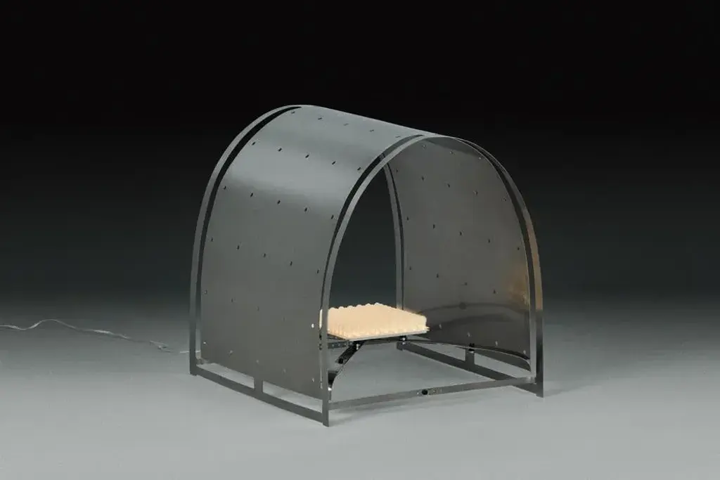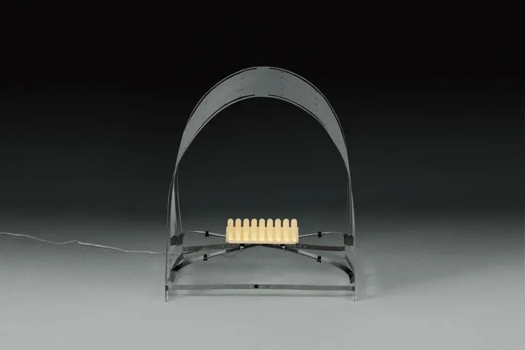 Folio floor lamp by kutarq studio materials: stainless steel. Dimensions: d 35 x w 45 x h 43 cm inox steel patinated by hand, warm led lightsource 21.6w/700ma 2.700k dimmable, 3d printed translucent diffuser, neodymium magnets. folio collection stems from ongoing explorations into the tensile qualities of steel, taking on the visual appearance of bent paper. Planar laser-cuts render 2d sheets of metal into 3d tensioned and transformed functional typologies: a chaise longue, a low table, and a floor lamp. The sculptural designs are adaptable, owing entirely to the innate material properties they harness and accentuate. Depending on the position of the screws, the high of the table and angle of the chaise lounge can be adjusted. When the pieces are not assembled, they are totally flat, and material waste is reduced to the minimum during the production. this piece is attributed to the mentioned designer/maker. It has no attribution mark and no official proof of authenticity, however it is well documented in design history. I take full responsibility for any authenticity issues arising from misattribution, up to 250v (europe/uk standard).