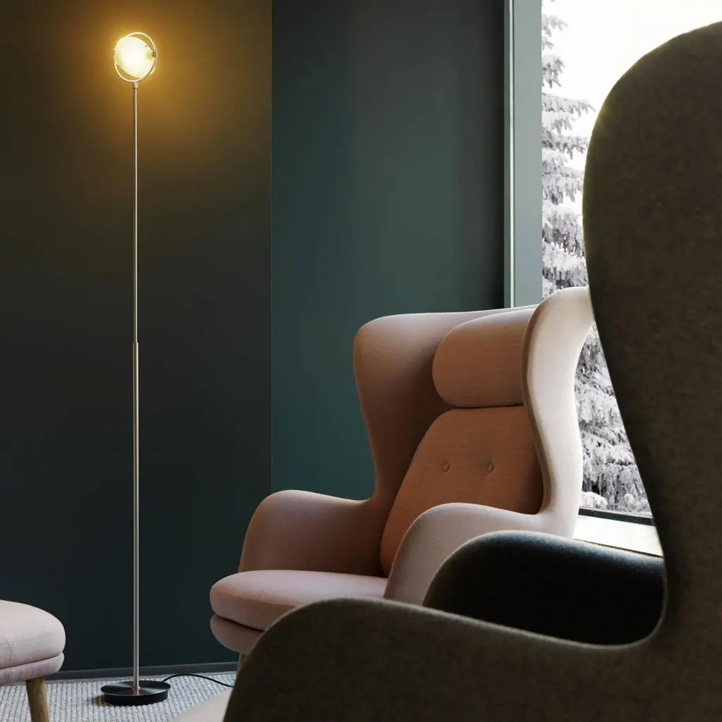 "Nobi" is a floor lamp, designed by Metis Lighting and manufactured by Fontana Arte, featuring a frame in chromed or satin nickel metal, adjustable diffusers in frosted glass and aluminum reflector for indirect light diffusion. It's provided with a dimmer and its lighting source is 14W LED (2700K, CRI>80, Lumen 1400).Dimensions:Ø 7.8", H 74.8"A circumference of chromed or satin metal with a circular diffuser, formed from a pair of cast, sandblasted and tempered glass lenses, two apparently simple elements that hide a complex system. The adjoined convex lenses are in fact held in place by a system of small clamps and fixed to the metal structure with two pins, the same on which the light source is also mounted. The diffuser can thus rotate on itself and orient the light flow in different directions. Innovative and available in multiple versions, Nobi provides maximum functionality while retaining a powerful aesthetic presence. Now available with LED light source, which adds energy efficiency and long life to the existing technical features.Both architects Marinella Patetta and Claudio Valént got masters in lighting design and many years of experience: they met at Piero Castiglioni's studio and, after a few years, in 1989 they founded Metis Lighting, working exclusively in lighting and industrial design. Their work enhances space thanks to lighting engineering projects that integrate their know-how gained from various fields into a synthesis of different disciplines. For FontanaArte, in the early 90s they designed the whole "Nobi" series, a collection on the fine line between decorative and technical lighting – immediately and still today one of the company's bestsellers. Their design of the "Gallery" projector dates back to 2006. Their professional activity has recently been joined by teaching and university research at the faculty of Industrial Design at Milan Polytechnic.