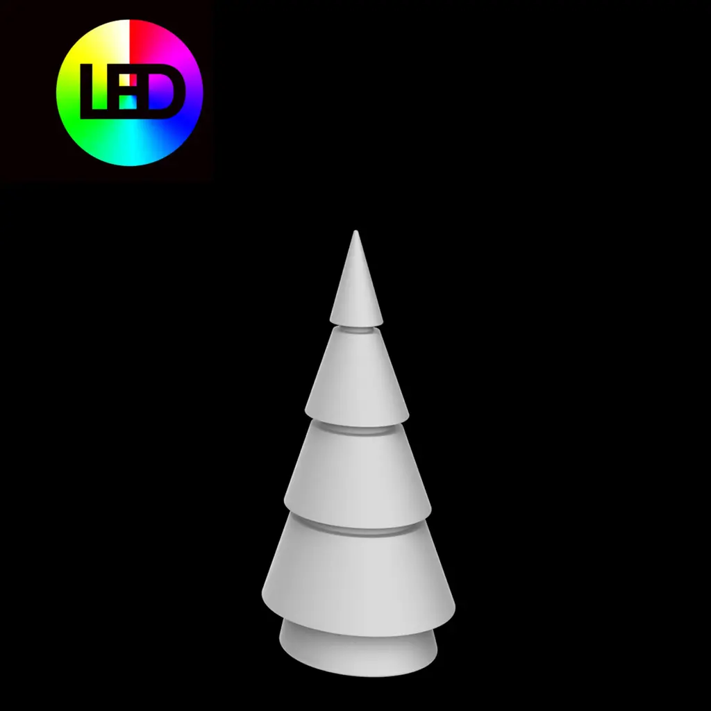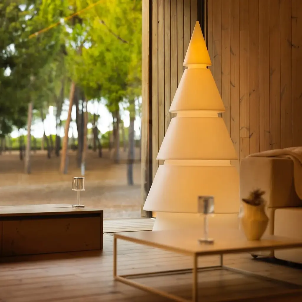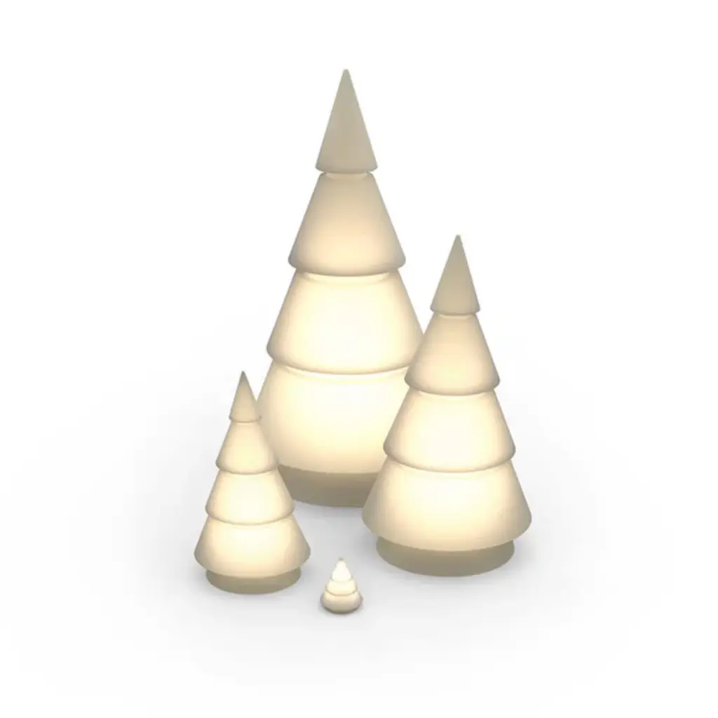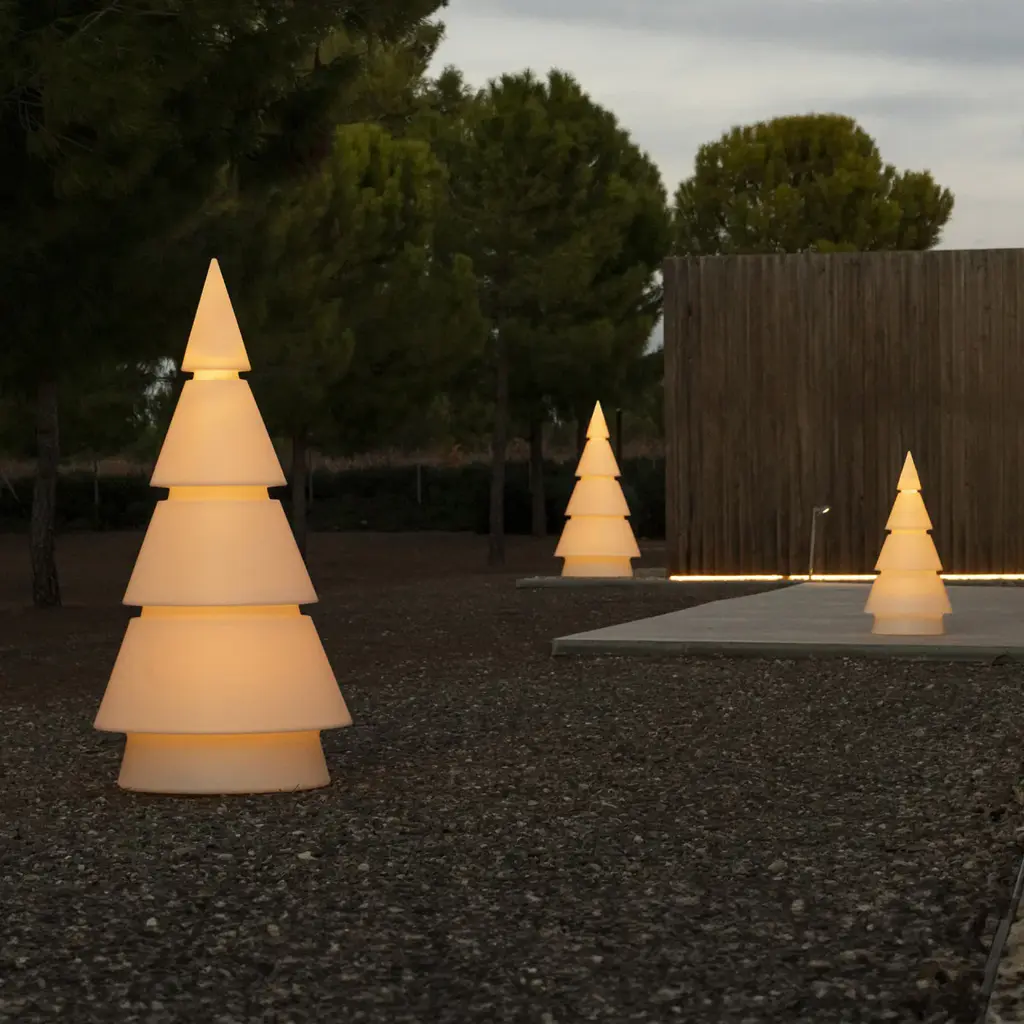 Ramón Esteve has designed for Vondom FOREST, a backlit piece shaped after a geometric abstraction of a Christmas tree. Its clean, depurated lines make FOREST a sober, timeless complement. The interior lighting, with a RGB LED bulb system, creates a surrounding atmosphere due to the use of light and color, which can be adjusted according to the moment and the ambiance desired. FOREST is the result of a severe formal synthesis. Its high-quality material makes this piece lightweight as well as resistant. It is perfect for both indoor and outdoor spaces. A magic tree that invites you to be immersed in the pure, beauty nature, together with your beloved ones, into this “illuminated forest” for such a special occasion as Christmas. Features