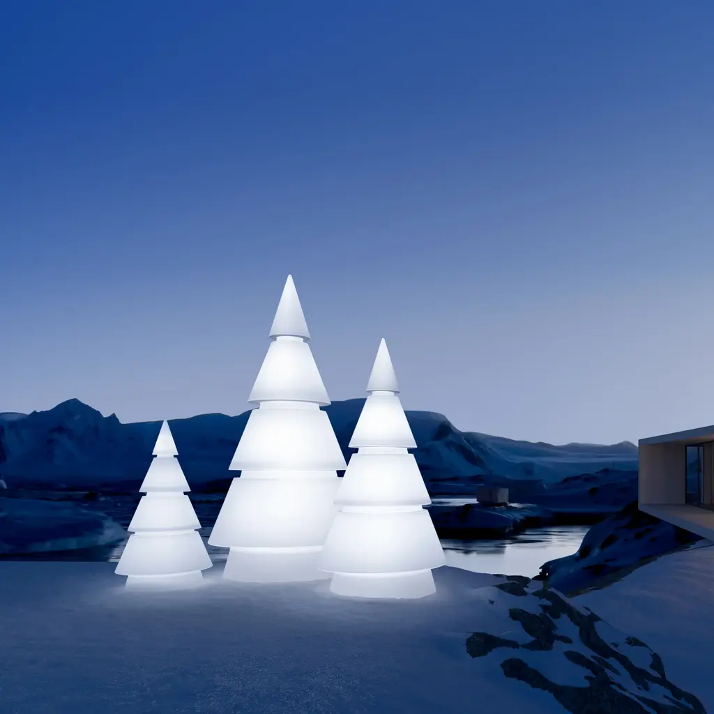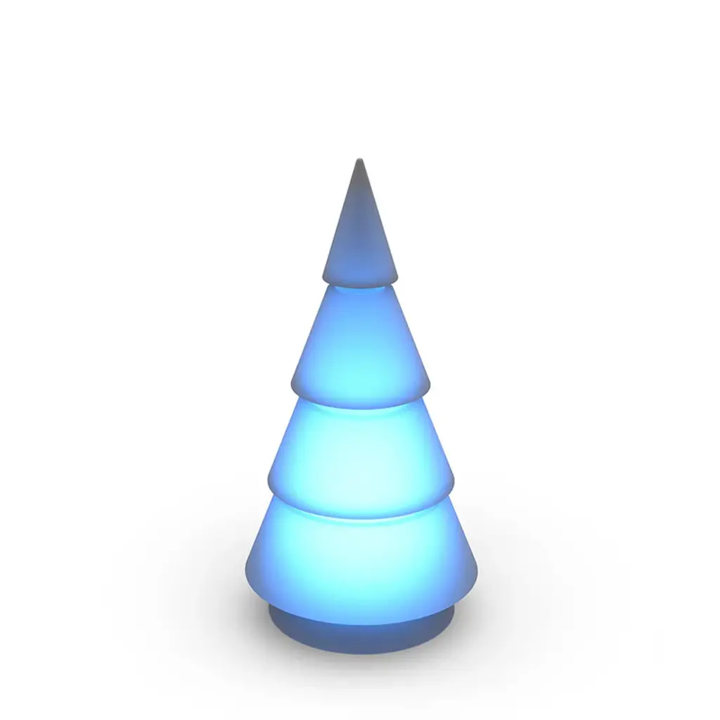 Ramón Esteve has designed for Vondom FOREST, a backlit piece shaped after a geometric abstraction of a Christmas tree. Its clean, depurated lines make FOREST a sober, timeless complement. The interior lighting, with a RGB LED bulb system, creates a surrounding atmosphere due to the use of light and color, which can be adjusted according to the moment and the ambiance desired. FOREST is the result of a severe formal synthesis. Its high-quality material makes this piece lightweight as well as resistant. It is perfect for both indoor and outdoor spaces. A magic tree that invites you to be immersed in the pure, beauty nature, together with your beloved ones, into this “illuminated forest” for such a special occasion as Christmas. Features