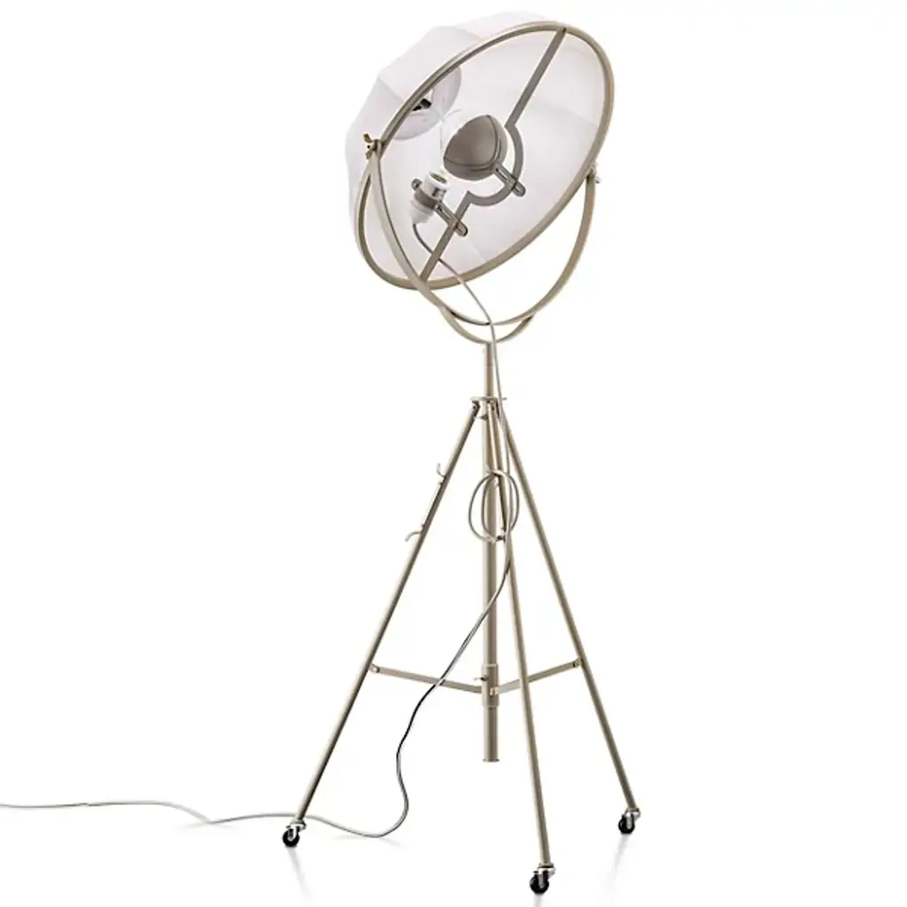 Put the spotlight on talent with the whimsical and welcoming lines of the Fortuny Floor Lamp from Pallucco. An early-stage lighting design by Maryano Fortuny, its intricate construction draws stability and inspiration from a camera tripod, drawing on the artist’s eclectic experience to create something revolutionary and memorable, reversing the traditional direction of the lampshade to create something that can project reflected radiance using diaphanous fabric. The shade takes on a soft glow from the lamping while projecting welcome radiance, transforming its surroundings with detail and character.
