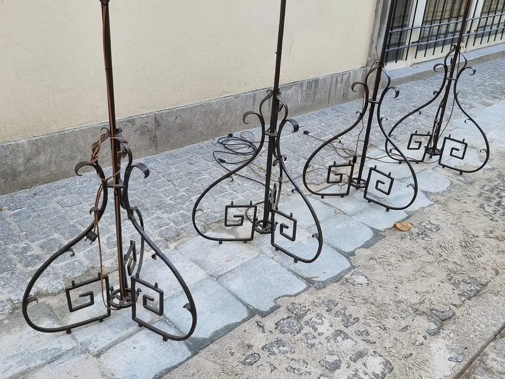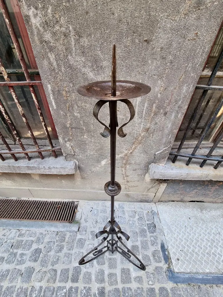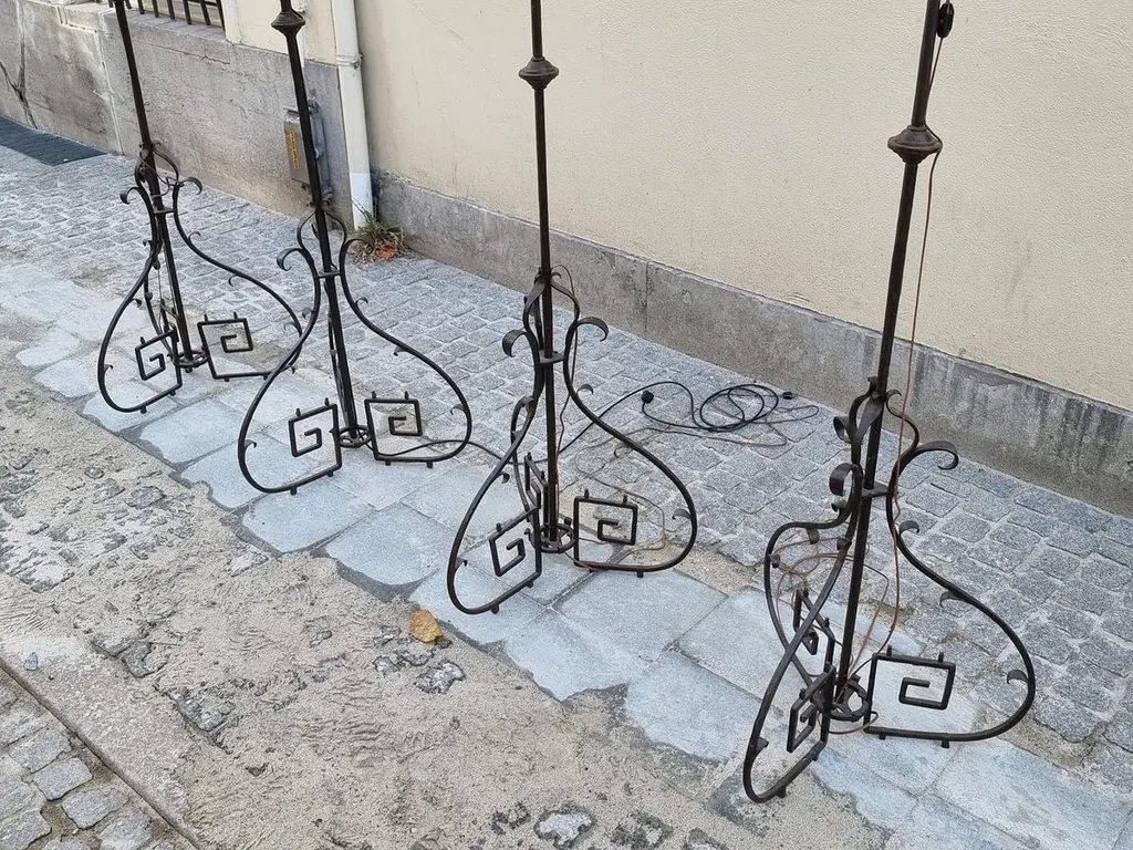 Four Antique Wrought Iron Art Deco Castle Monastery Floor Lamps Or Candlestick