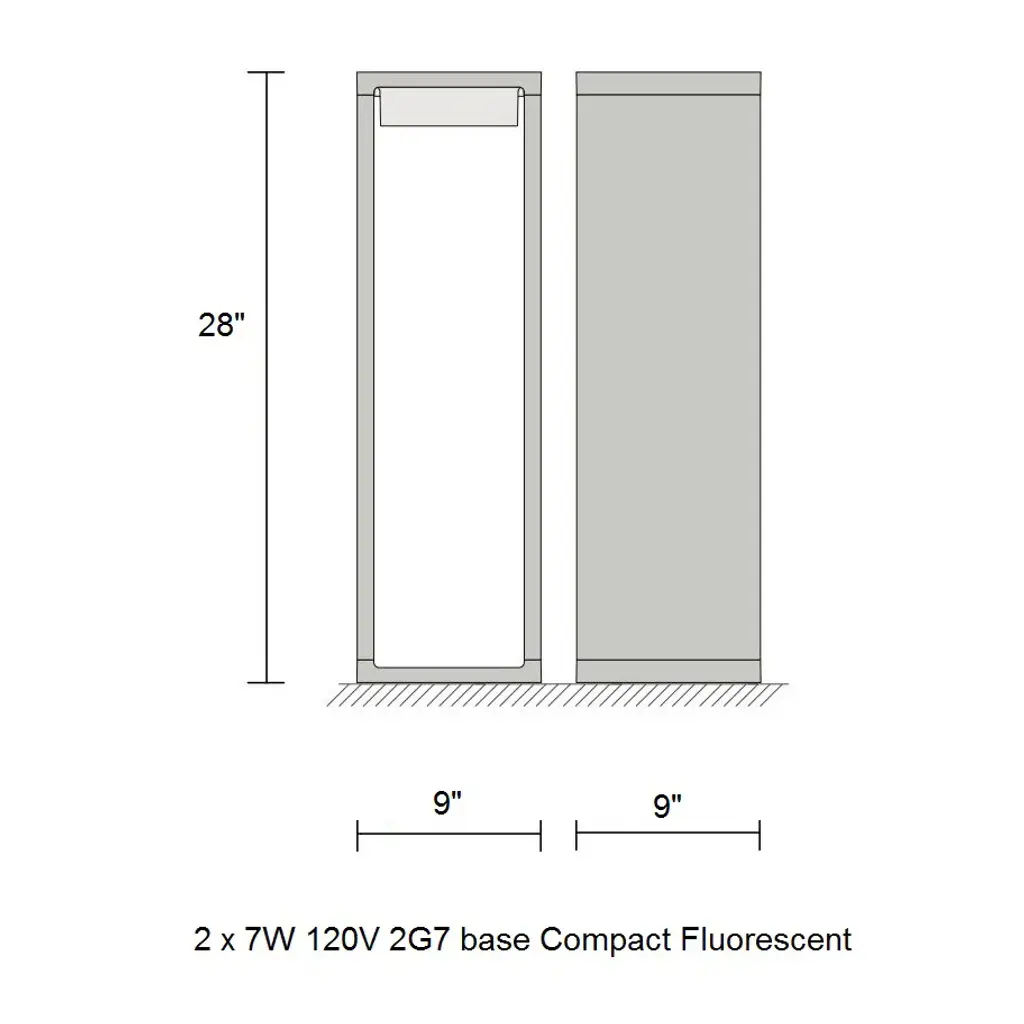 An outdoor low-level luminaire shaped like a hollow rectangular prism with rounded edges. Frame’s body is made from aluminum, the diffuser from pressed glass. The diffuser fully illuminates Frame’s interior while softly illuminating the surrounding area. Features