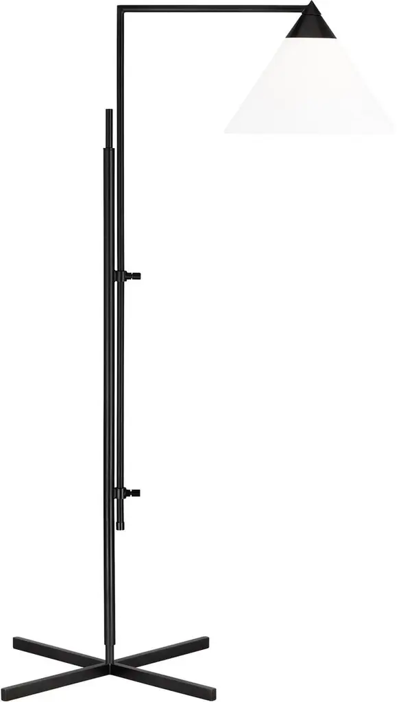 The triangular linen shade adds a dash of whimsy to this sleek and sophisticated floor lamp, while the dark bronze finish contributes a sense of luxury.
