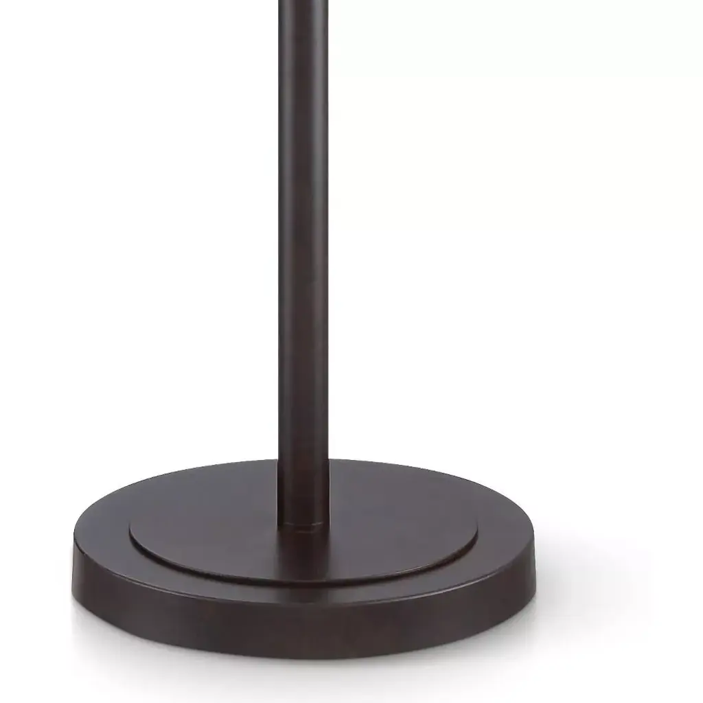Accentuate a favorite room in the home with this lovely two-light floor lamp. From Franklin Iron Works™, this metal lamp is bathed in rich bronze finish. Its double layer shade features a warm organza outer layer enveloping an off-white linen shade.