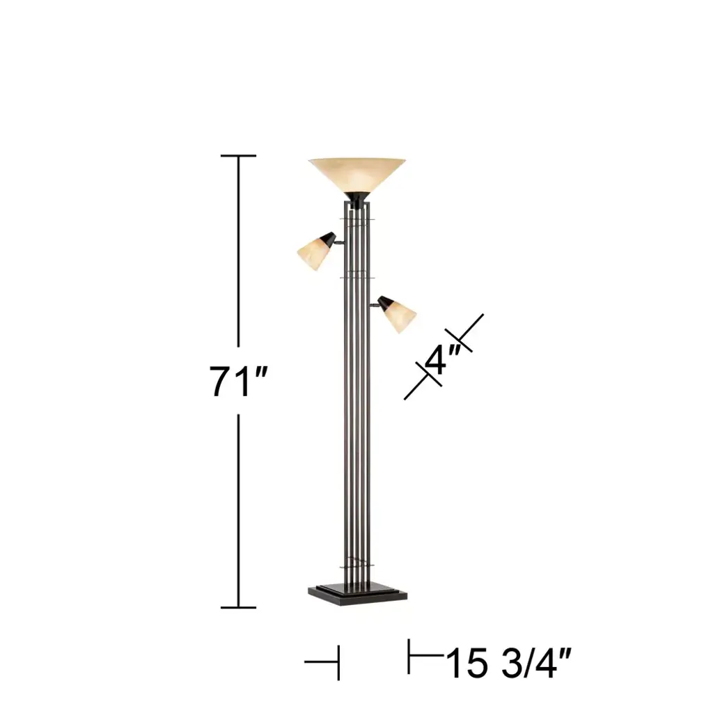 Franklin Iron Works Metro Mission Rustic Torchiere Floor Lamp With Side Lights 71" Tall Bronze Champagne Glass For Living Room Reading Bedroom Office