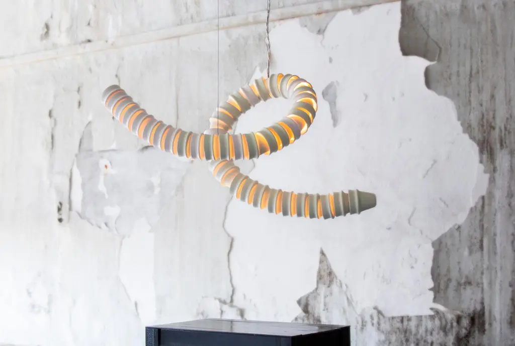 ‘Freeform’ is a series of distinctive and customizable light pieces made from ceramic and LED lighting inspired by old Venetian glass technique used to produce glass chandeliers. The abstract shapes of the lamps are inspired by the repetition of natural animal forms. The inside features a shiny. Reflective glaze while the outer surface has a matte finish. Giving a soft feel.The collection is 100% customizable in dimensions and colorsPlease note that these lighting fixtures are not UL certified.The collection includes floor. Ceiling and table light fixtures.