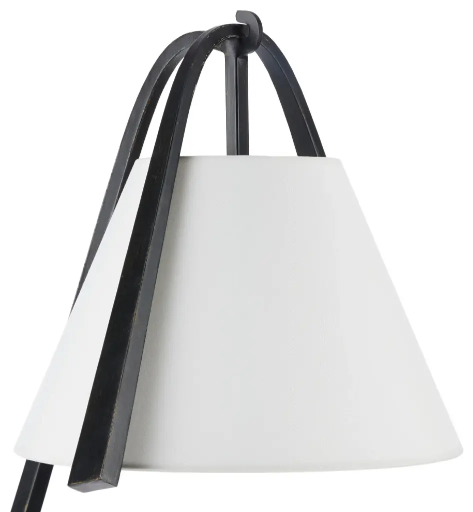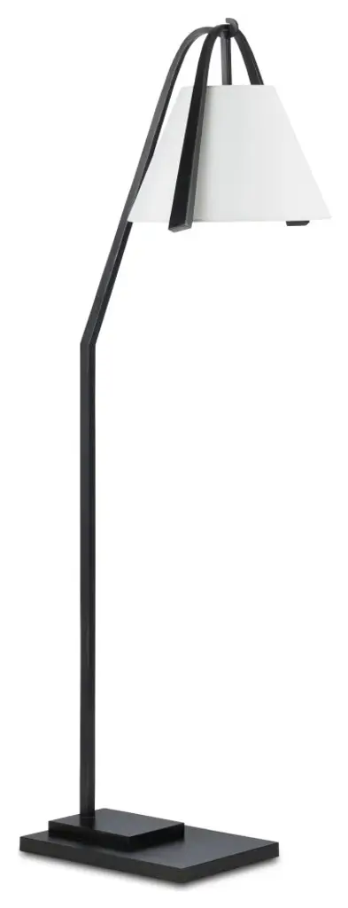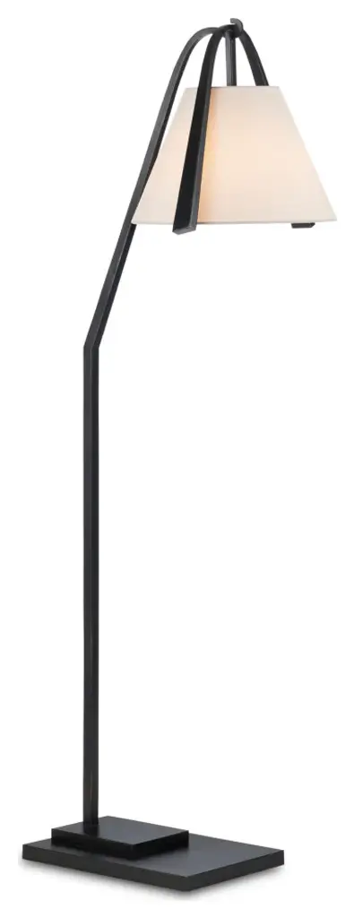 Ian Thornton has been exploring how to bring task lights high style, and he has certainly succeeded with the Frey Floor Lamp that is made of steel in a satin black finish with brushed brown accents. The way the off-white shantung shade is fitted to the curving arm is a refined aspect of the design, as it lends the profile a subtle Asian flair. The stacked base has an engineered precision but it also creates a wonderful sense of balance as it extends to the point where the bands holding the shade taper down.Bulbs Included: NBulb Wattage: 60Bulb Type: A StandardNumber of Bulbs: 1UL Listed: YesHardwire or Plug: Plug