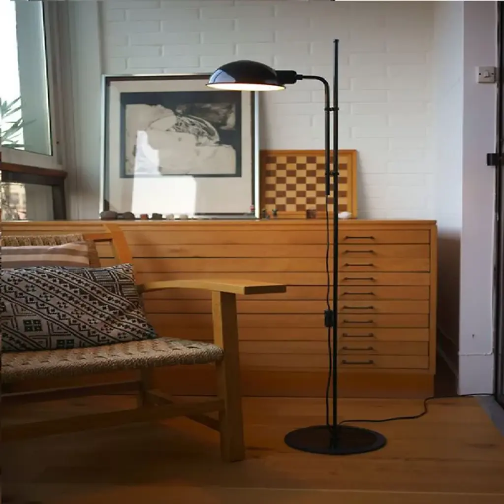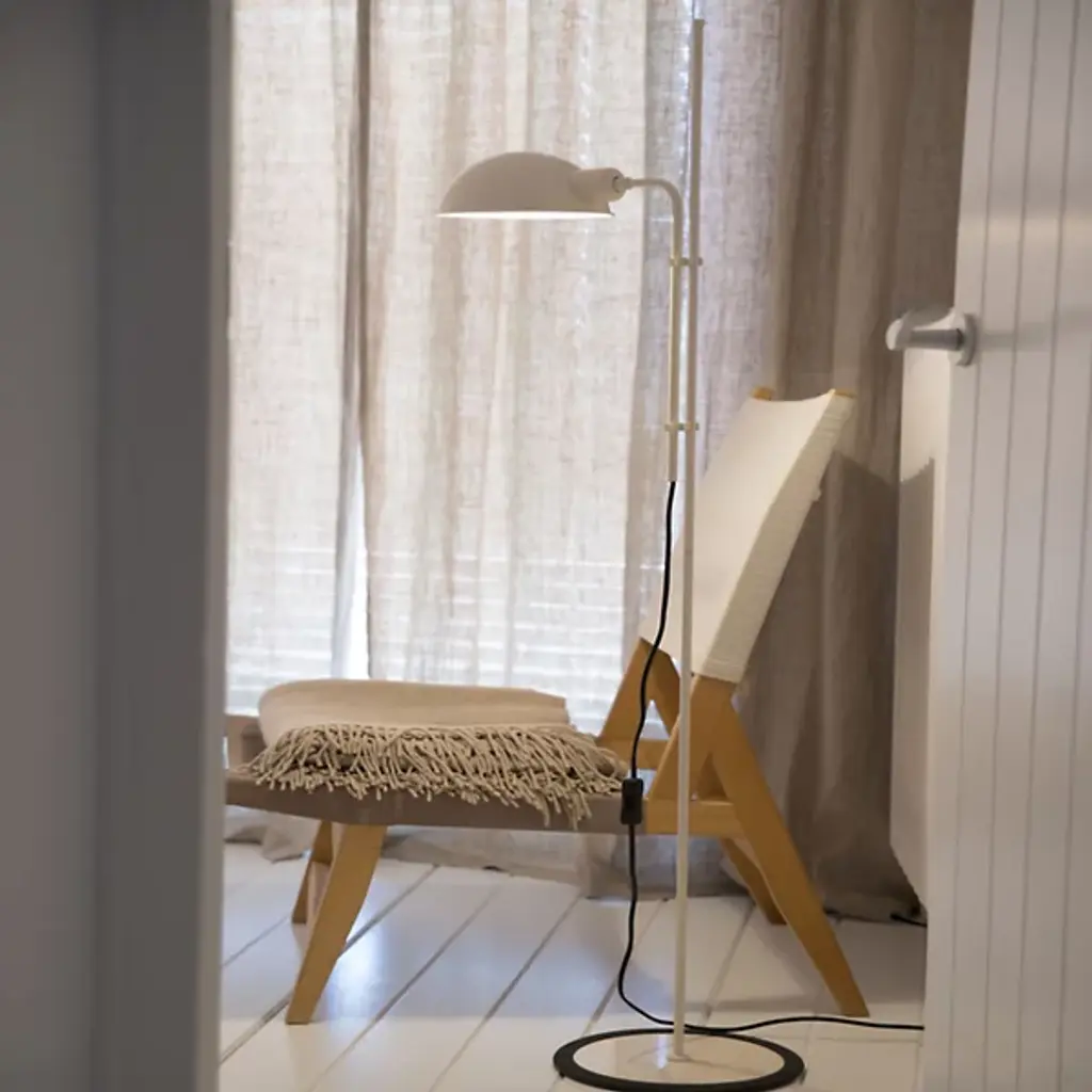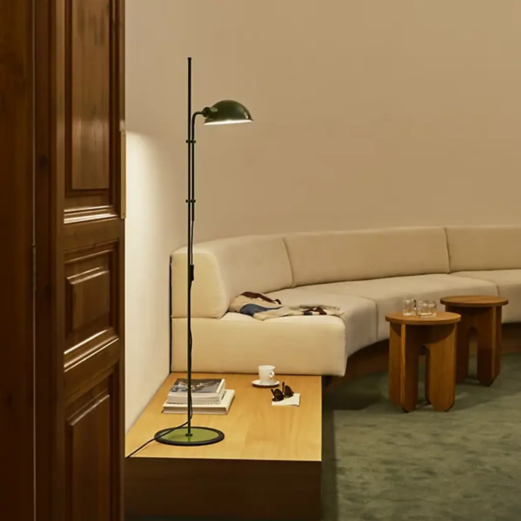 "I have never made fashionable lights because they soon go out of fashion." - Lluis Porqueras. Right on. Originally issued in 1979, the Funiculi Floor Lamp is sublimely simple. While featuring timeless task features like an adjustable stem and 360º shade, it's the balanced juxtaposition of primary shapes that truly garner the attention, with a retro shade providing a contemporary counterpoint to its cylindrical (and rubber encircled) iron base.