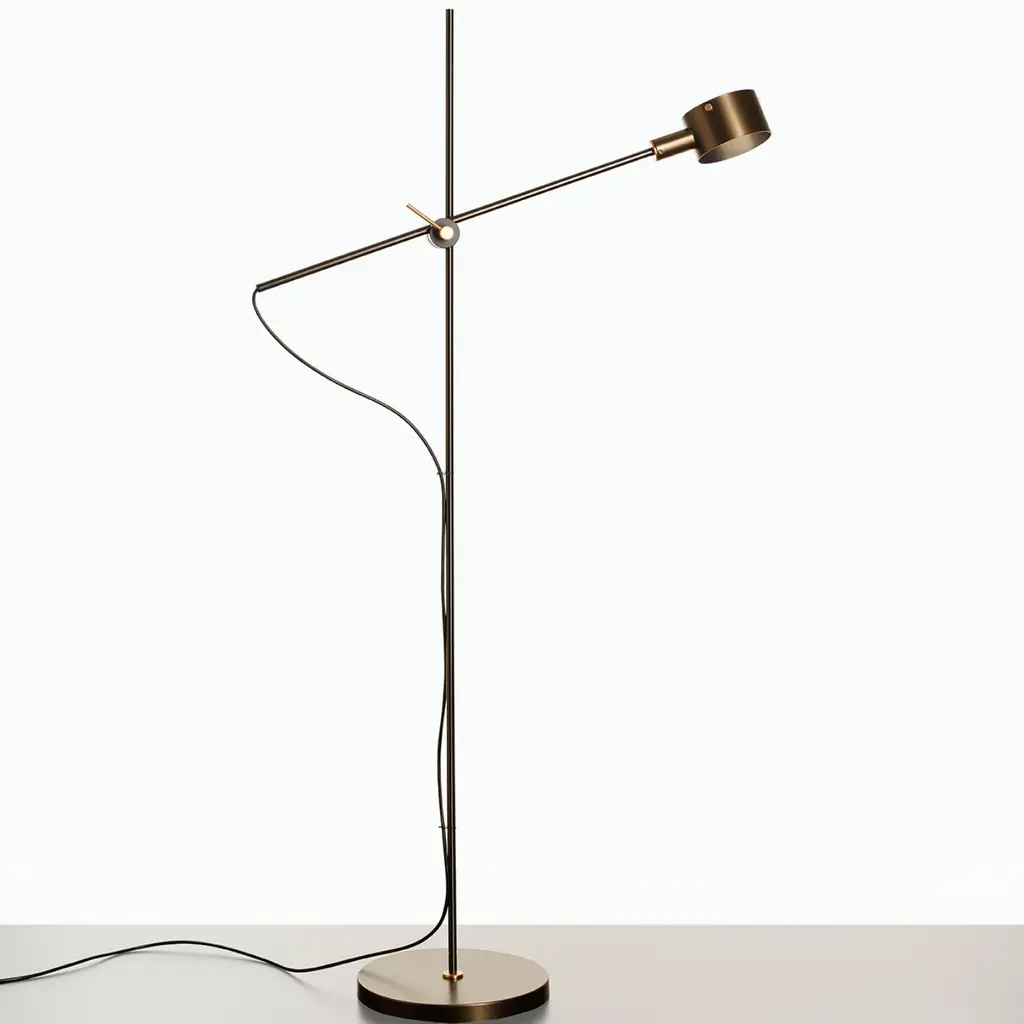 Extending a brilliant 1960s Oluce model by Giuseppe Ostuni, G.O. Floor Lamp seems even more relevant today with the shifting boundaries of work and home life. Mounted on a vertical stem, the horizontal arm with the lampshade can easily be positioned for maximum effect, sliding and angling as needed at the levered joint. The lamp also reflects the vivacious Italian style of the era, with its black-nickel structure and the metal reflector shade and base in matte black, scarlet gloss or satin bronze.