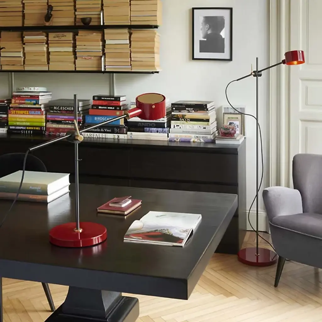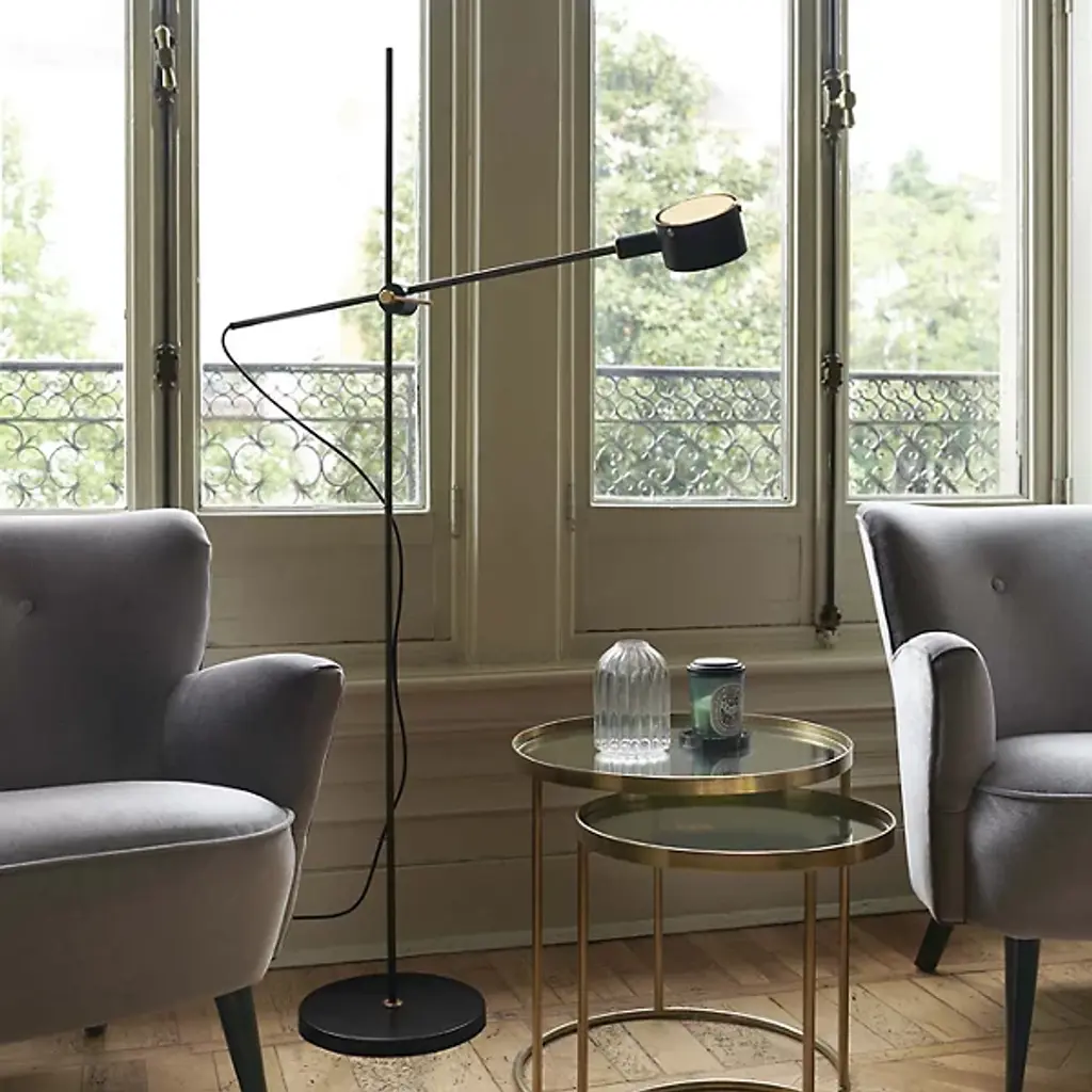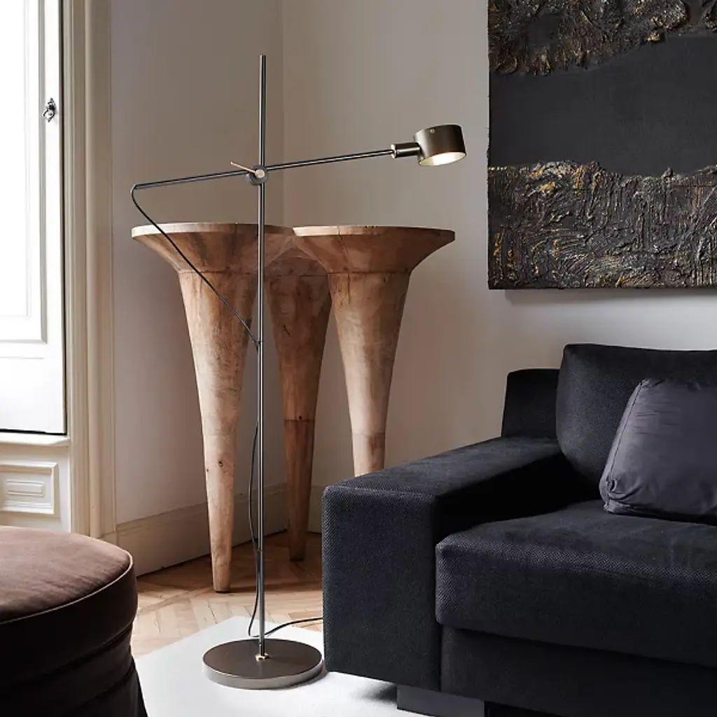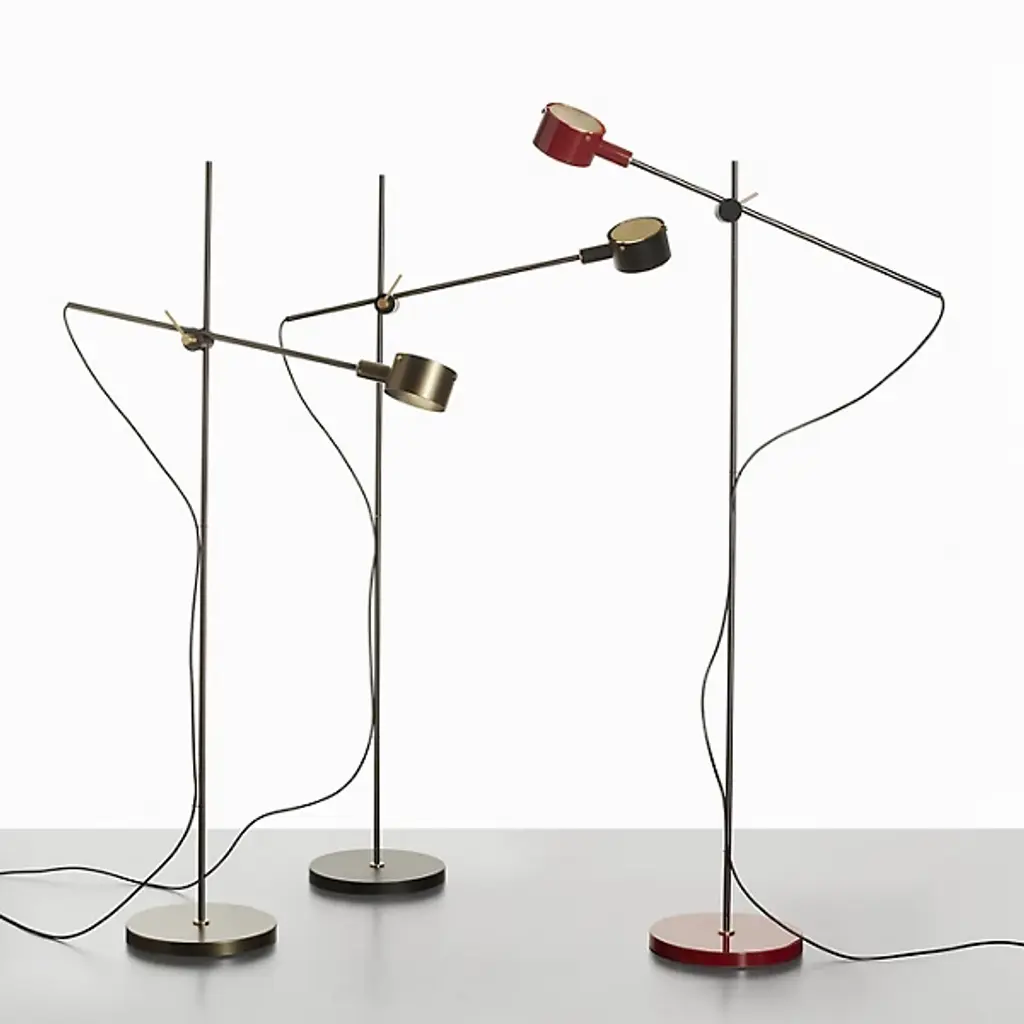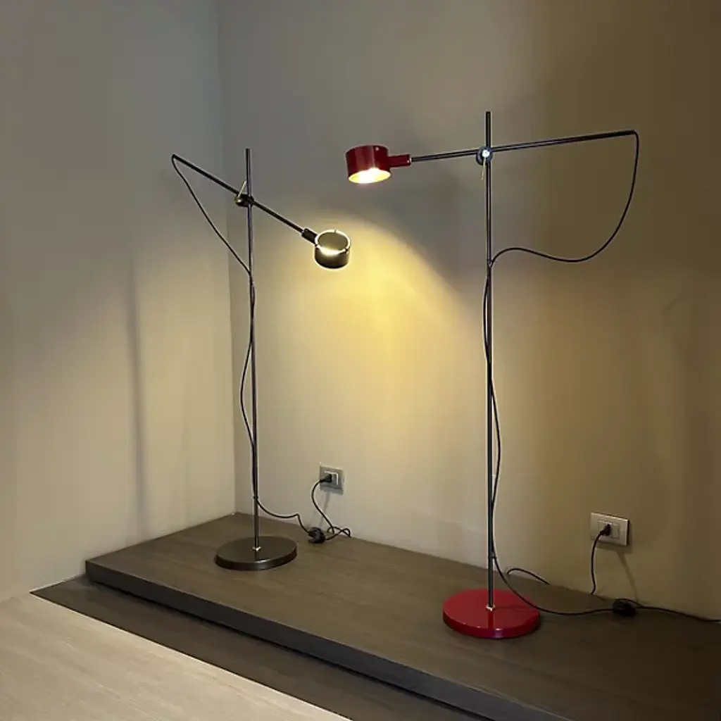 Make the timeless G.O. Floor Lamp by Oluce a part of your home décor setup. A baseplate provides the foundation for a slender rod of metal. This rod intersects with an arm at a focal point, allowing a finely crafted cylindrical encasement to suspend freely. Inside of this casing rests an integrated LED that projects light throughout your environment with ease. Your floor lamp’s streamlined formation makes it a great source of precision lighting. The G.O. Floor Lamp was originally designed in the 20th century by Giuseppe Ostuni, and this relaunch pays tribute to his many years of experience in the field of Italian design.