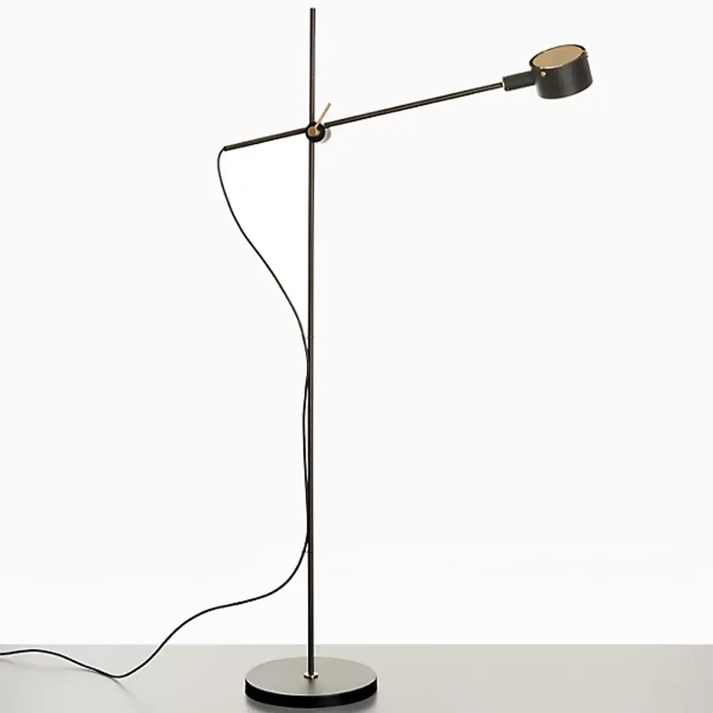 Make the timeless G.O. Floor Lamp by Oluce a part of your home décor setup. A baseplate provides the foundation for a slender rod of metal. This rod intersects with an arm at a focal point, allowing a finely crafted cylindrical encasement to suspend freely. Inside of this casing rests an integrated LED that projects light throughout your environment with ease. Your floor lamp’s streamlined formation makes it a great source of precision lighting. The G.O. Floor Lamp was originally designed in the 20th century by Giuseppe Ostuni, and this relaunch pays tribute to his many years of experience in the field of Italian design.