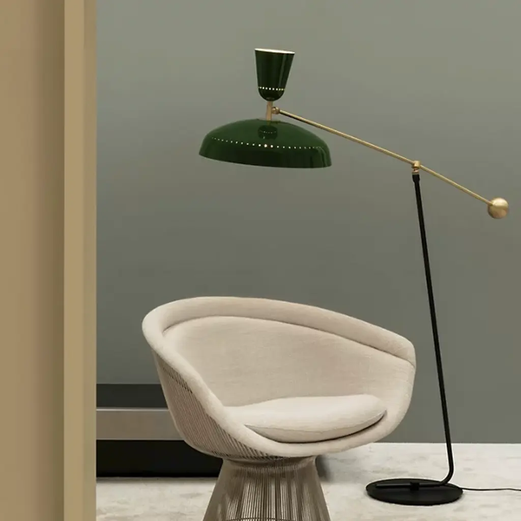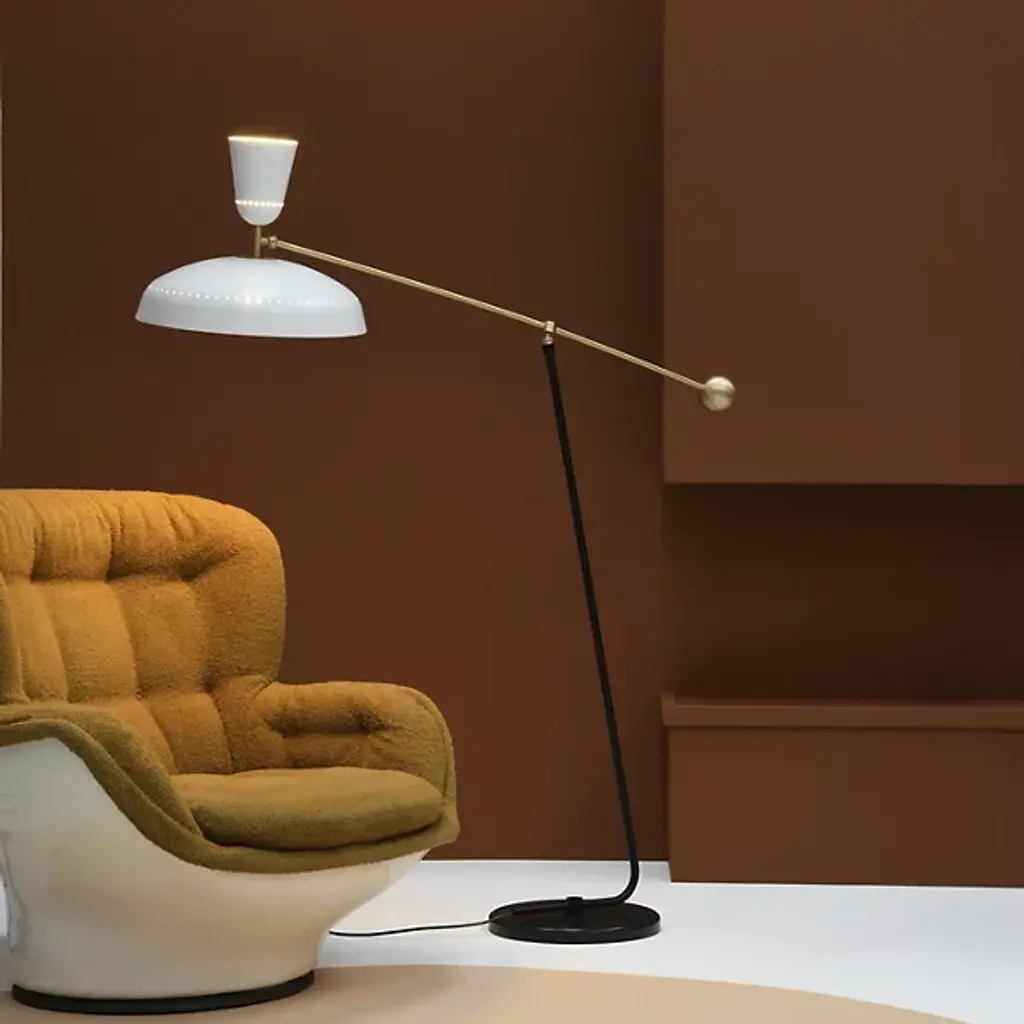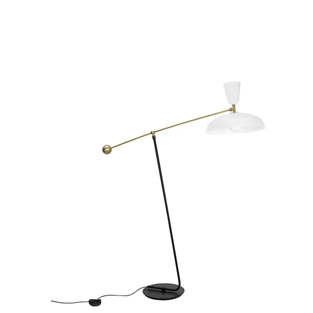 G1F Floor Lamp from Sammode is a true work of art, designed by the visionary Pierre Guariche and crafted with precision in France. Its embossed metal lampshade and two light sources provide both direct and indirect lighting, while its solid brass ball counterweight and adjustable brass arm make it easy to direct the light exactly where you want it with only the lightest touch. The G1F Floor Lamp is a perfect addition to your space, providing both functionality and style.