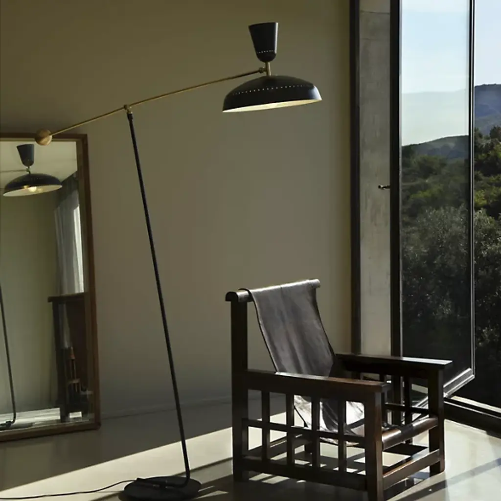 G1F Floor Lamp from Sammode is a true work of art, designed by the visionary Pierre Guariche and crafted with precision in France. Its embossed metal lampshade and two light sources provide both direct and indirect lighting, while its solid brass ball counterweight and adjustable brass arm make it easy to direct the light exactly where you want it with only the lightest touch. The G1F Floor Lamp is a perfect addition to your space, providing both functionality and style.