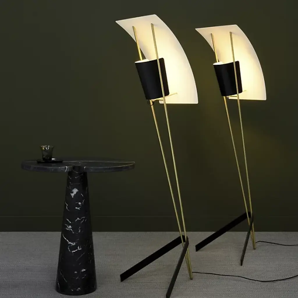 The G30 Floor Lamp from Sammode is a breathtaking masterpiece of design and engineering crafted with precision in France. Designed by the iconic French designer Pierre Guariche, the G30 Floor Lamp is often referred to as "The Kite," a name coined by Guariche himself. Its striking design suggests the sail of a boat, evoking a sense of escape and freedom. The lamp is a true work of art, featuring clean lines and a minimalist form that exudes elegance and sophistication.