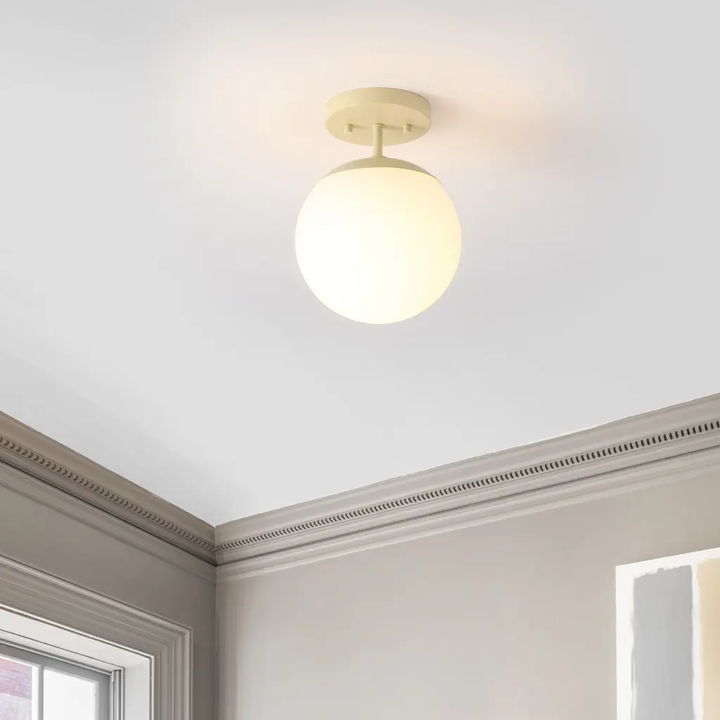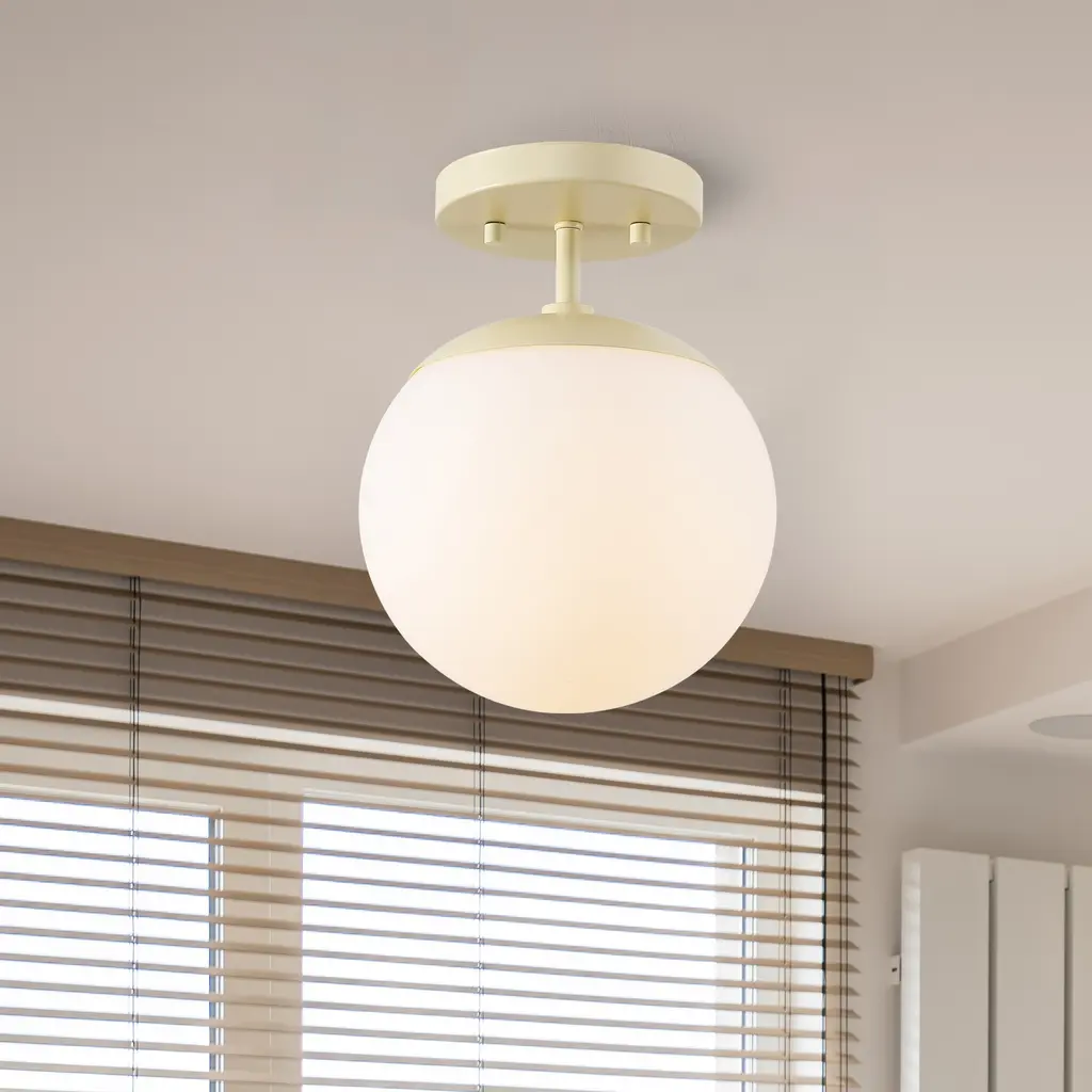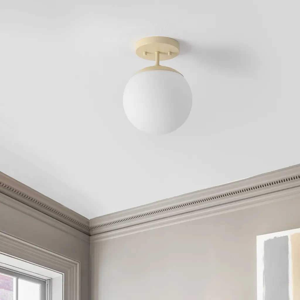 Bring on the mid-century Parisian flair with our vintage bistro-inspired ceiling light. A single LED bulb in a frosted glass globe provides plenty of light. Clean lines and a high-quality finish add a glam touch. This versatile ceiling fixture is the perfect modern, minimalist accent for your dining room, living room, bedroom or entry.Features:Dimensions:About us:You see a lamp.We see a decorative work of art.A perfectly curved shade casts a dramatic shadow on a floor. Compatible with LED lightbulbs: as easy on the environment as they are on the eyes. The JONATHAN Y Lighting collection considers every detail from impeccably sourced materials to designer styling. And our prices are so attractive, we've transformed a functional necessity into a fashion accessory.JONATHAN Y Lighting - a fashion revolution in home decor.