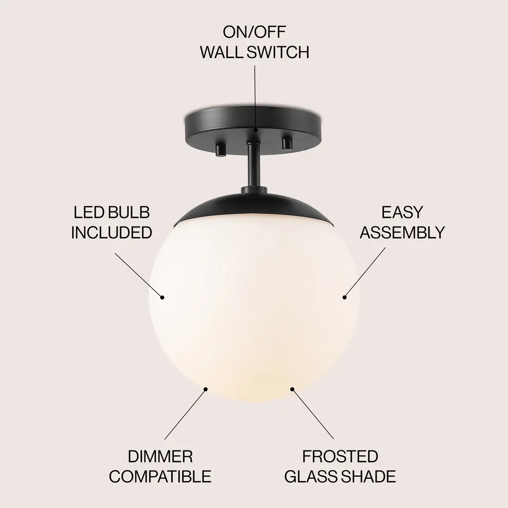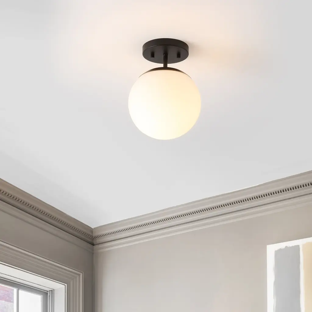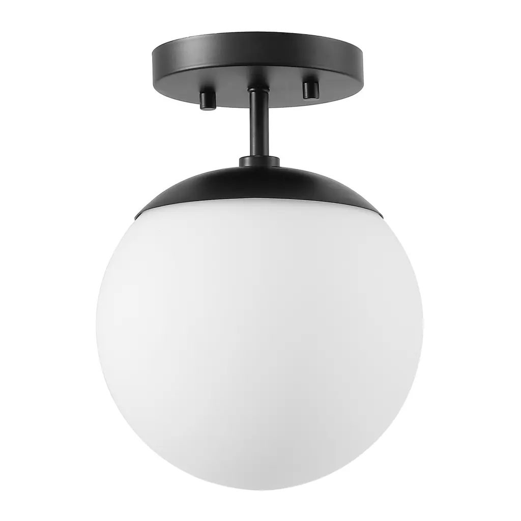 Bring on the mid-century Parisian flair with our vintage bistro-inspired ceiling light. A single LED bulb in a frosted glass globe provides plenty of light. Clean lines and a high-quality finish add a glam touch. This versatile ceiling fixture is the perfect modern, minimalist accent for your dining room, living room, bedroom or entry.Features:Dimensions:About us:You see a lamp.We see a decorative work of art.A perfectly curved shade casts a dramatic shadow on a floor. Compatible with LED lightbulbs: as easy on the environment as they are on the eyes. The JONATHAN Y Lighting collection considers every detail from impeccably sourced materials to designer styling. And our prices are so attractive, we've transformed a functional necessity into a fashion accessory.JONATHAN Y Lighting - a fashion revolution in home decor.