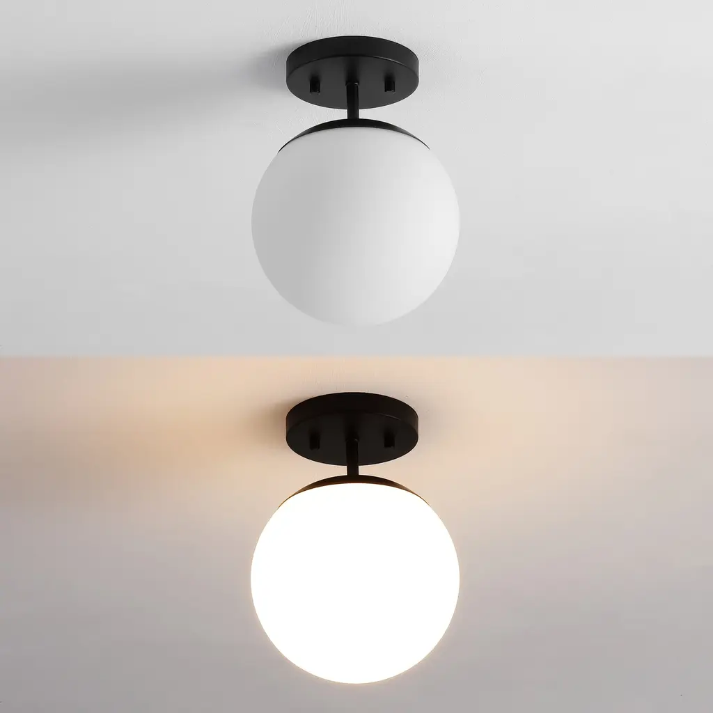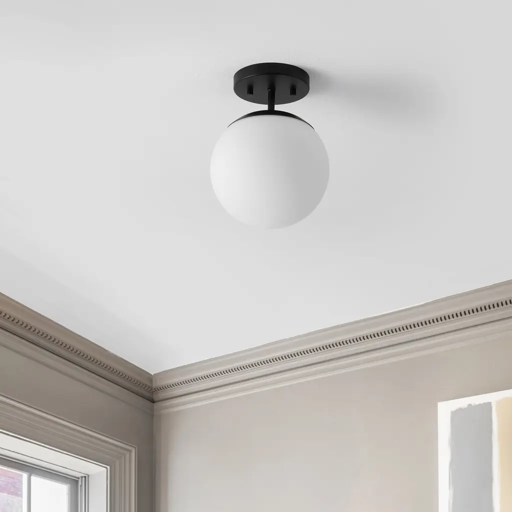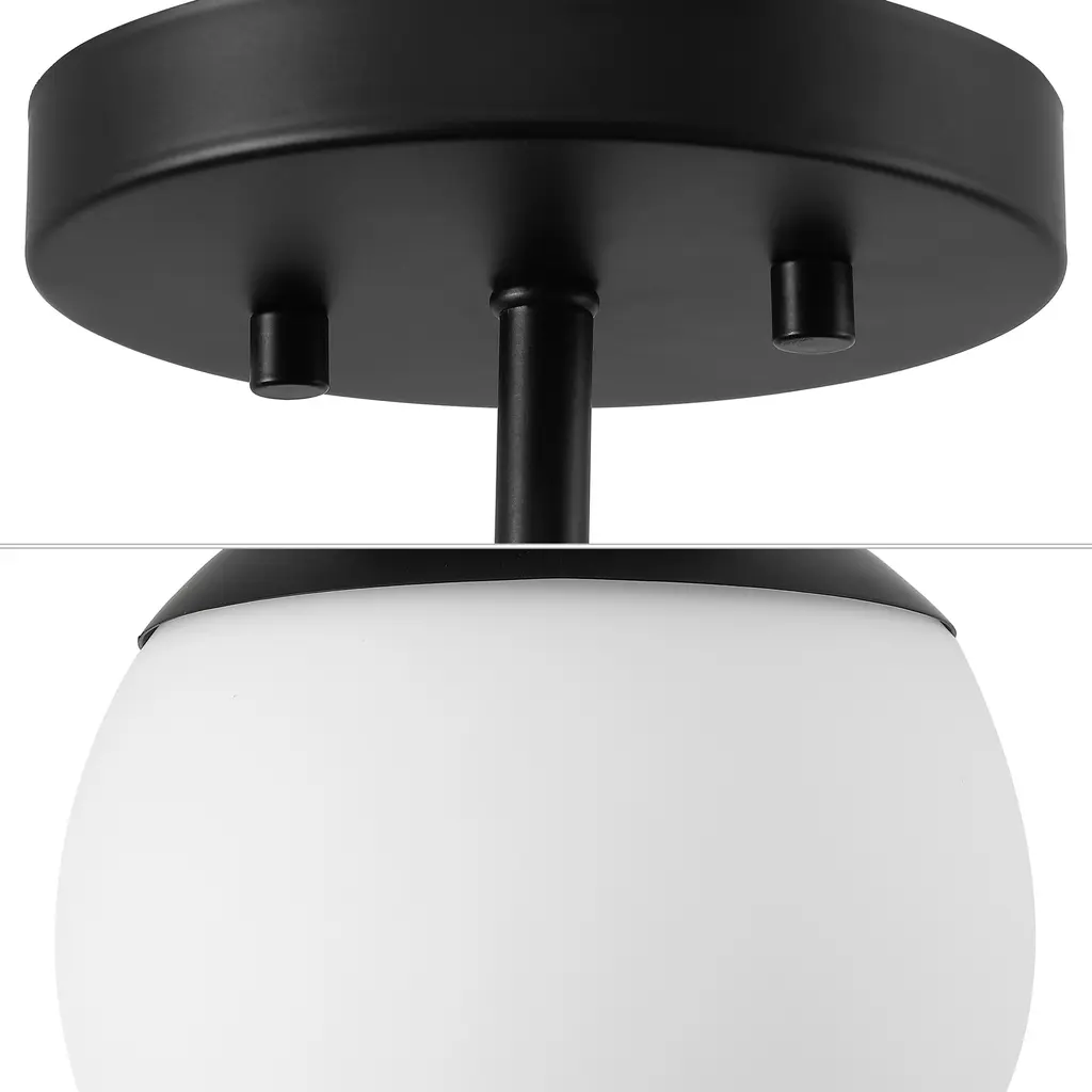 Bring on the mid-century Parisian flair with our vintage bistro-inspired ceiling light. A single LED bulb in a frosted glass globe provides plenty of light. Clean lines and a high-quality finish add a glam touch. This versatile ceiling fixture is the perfect modern, minimalist accent for your dining room, living room, bedroom or entry.Features:Dimensions:About us:You see a lamp.We see a decorative work of art.A perfectly curved shade casts a dramatic shadow on a floor. Compatible with LED lightbulbs: as easy on the environment as they are on the eyes. The JONATHAN Y Lighting collection considers every detail from impeccably sourced materials to designer styling. And our prices are so attractive, we've transformed a functional necessity into a fashion accessory.JONATHAN Y Lighting - a fashion revolution in home decor.
