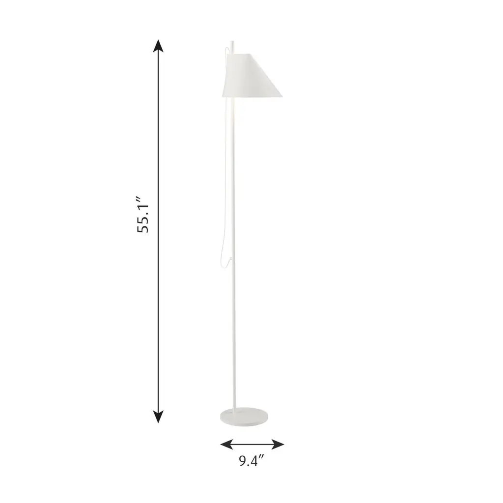 GamFratesi Black 'Yuh' Floor Lamp for Louis PoulsenDesigned in 2017 by the Danish-Italian duo Stine Gam and Enrico Fratesi, the 'Yuh' floor lamp is inspired by the classic virtues of Danish Modernism, Poul Henningsen’s scientific approach to light, and Arne Jacobsen’s geometric shapes. The 'Yuh' is designed to be personal, flexible, and to take up very little space.Executed in die cast aluminum, extruded brass, the 'Yuh' floor lamp primarily provides glare-free downward directed light. The all white and all black variants have a matte wet painted die cast aluminum base and the brass variant base is made from either Italian Nero Margiua or white Carrara marble. The angle of the shade can be adjusted to optimize light distribution. The slim opening at the top of the shade provides soft, ambient upward illumination. The shade pivots, rotates, and slides on the vertical stem to optimize light distribution. A mechanical system provides great freedom of movement, so the light can always be set in the ideal position in the workspace, living room, etc.Price is per item. Available in unlimited quantities in four finishes. Wall and table lamp models in separate listings. This listing is for the 'Yuh' floor lamp in black. In-stock lead time 2-3 weeks or less. Out of stock lead time up to 10-12 weeks. Please note in-stock availability subject to change. For time-sensitive orders, please inquire prior to purchasing.Accommodates a single integrated 10W LED 2700K LED. Stepless dimming. UL listed. IP 20 rated.Made to order.All sales are final.