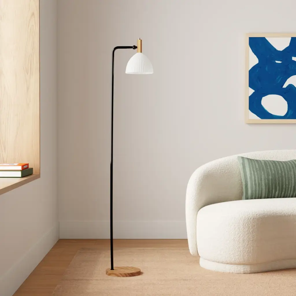 A sleek illumination solution for your space. This floor lamp features a white glass dome shade atop a sturdy metal base. With a single light and switch included, it's perfect for adding ambient lighting to your room. Let there be light, in style.