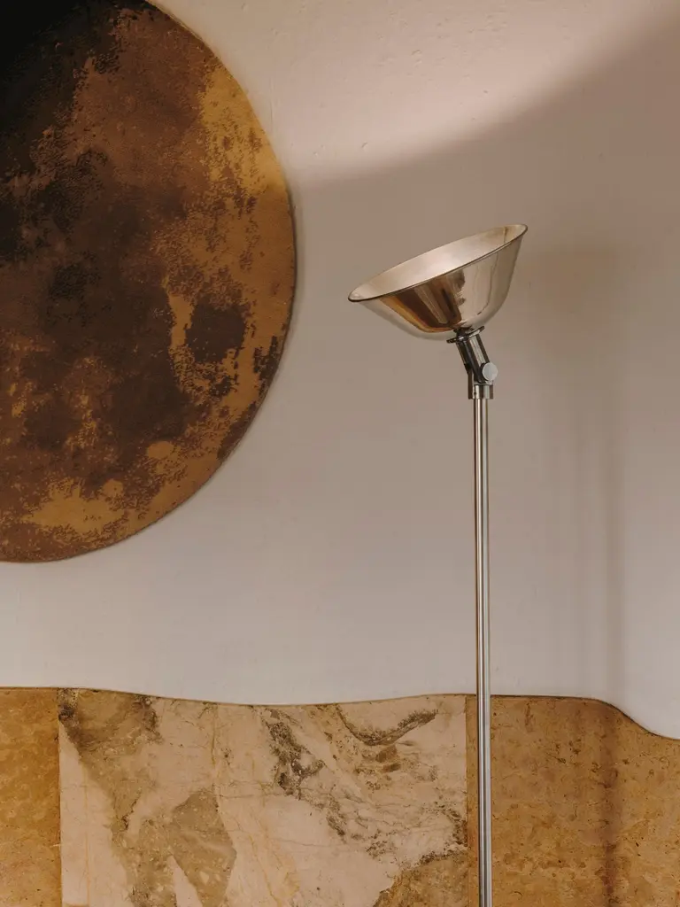 GATCPAC floor lamp by Josep Torres ClavéDimensions: D 41 x H 207 cmMaterials: Aluminum.The GATCPAC lamp is a tribute to the group of Catalan architects of the same name who sought to modernise the approach to construction during their era. Conceived as a machine à illuminer, members of the group used to leave these lamps as a gift to their customers, symbolic of their modern outlook, by way of a collective signature.Adjustable lampshade. Dimmer included.Santa & Cole is a small, independent and global editor of design products, with its roots in Belloch (Barcelona, Spain). We have been editing since 1985, when the company was first founded. By editing we mean preparing a work for the public domain, we mean adapting an item for everyone’s use. What a book editor does with stories, we do with objects.More than eighty creators have contributed to a rich catalogue of furniture and lighting products originating in very different contexts, by renowned designers such as Antoni Arola, Miguel Milá, André Ricard and llmari Tapiovaara.Acute and attentive to quality and detail, Santa & Cole outsources all of its industrial production to an extensive network of suppliers, mainly in Spain, but also in other countries such as Japan, where the washi paper for our Tekiò lamp is made.Our mission is to build, safeguard and disseminate knowledge through design objects. Objects whose quality is recognisable at the touch of a hand, and that enrich people’s lives, whether at home or in shared environments. Our philosophy is more modern than futurist and we are more intrigued by silence than by stridency.Our focus is not the present market, but the future one; not Barcelona, but the world; not fashion, but history.All our lamps can be wired according to each country. If sold to the USA it will be wired for the USA for instance.