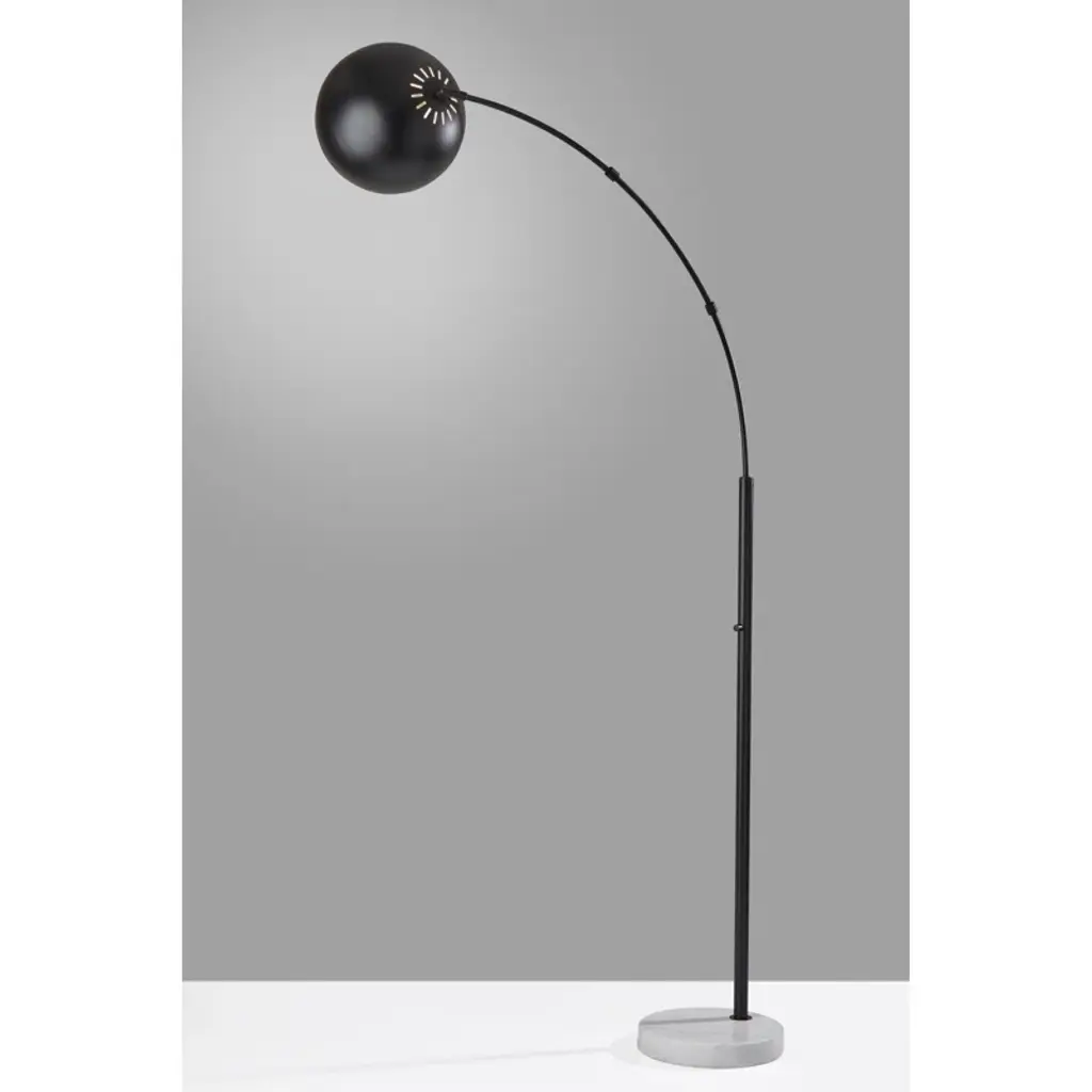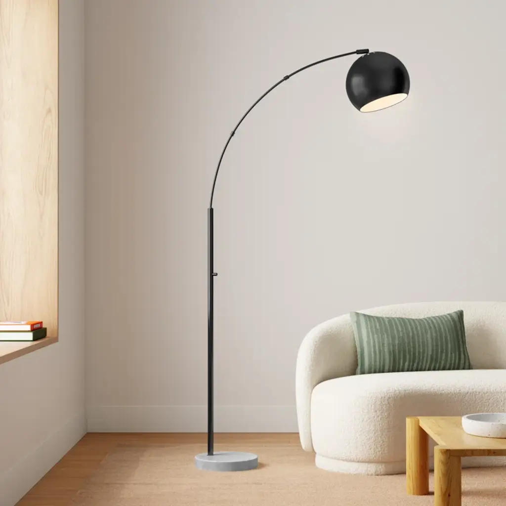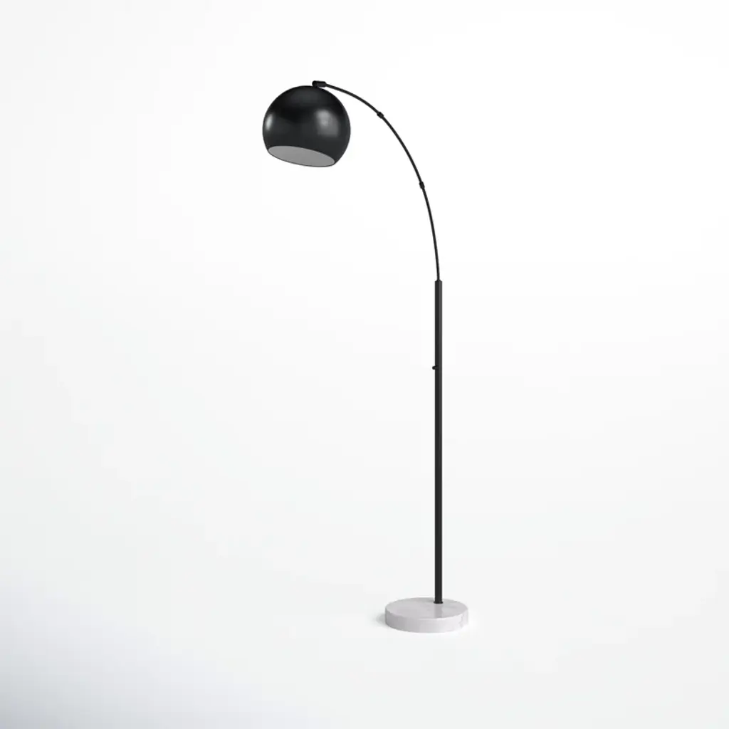 See your space in a new light. Crafted from metal, this arched floor lamp features a sleek, curved body for a minimalist look, while its dome-shaped shade adds a dash of mid-century style. The shade features a narrow opening, so it casts a targeted glow over your sofa or reading chair. This lamp is anchored to a chunky, circular white marble base for stability and visual appeal. And at 78" tall it strikes a dramatic silhouette in your living room. This lamp accommodates one 100W bulb (sold separately), and it includes a rotary socket switch. Plus, it's dimmable.
