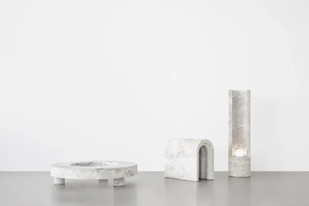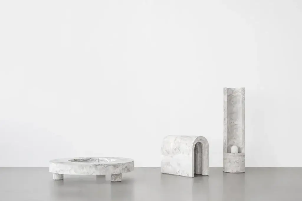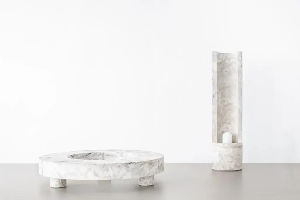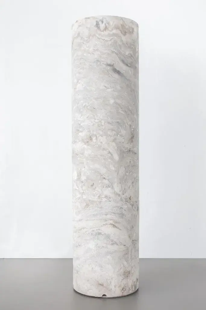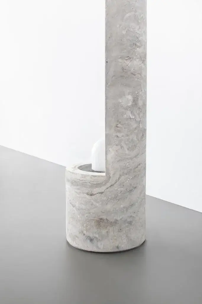 Gestalt bench - signed by sment materials: pigmented concrete, black/moss marbled dimensions: h: 120 cm ø 30 cm limited edition of 25 signed and numbered gestalt lamp the slender, cylinder shaped gestalt lamp catches the light with it’s tall back piece and reflects it on the concrete. The concrete complexion gives the lamp a sculptural and static appearance that is nicely counterbalanced by the subtle, light-colored pigmentation. The mirrored fitting enclosed in the cilinder layers the light subtly over the asymmetrical tube resulting in an impression of great depth. Gestalt is the result of mass meeting grace. Frederik bogaerts and jochen sablon take materials under their skin to feel, become and be it. Demolish, deconstruct and reassemble it. To finally gift the cleared material with a design that uplifts but not outshines the material. A sment design gives matter the well deserved pedestal that is both functional and sculptural. This piece is attributed to the mentioned designer/maker. It has no attribution mark and no official proof of authenticity, however it is well documented in design history. I take full responsibility for any authenticity issues arising from misattribution, up to 250v (europe/uk standard).