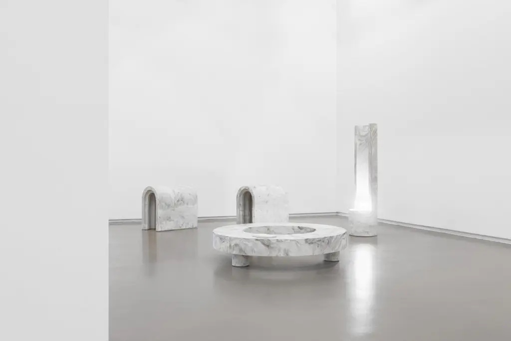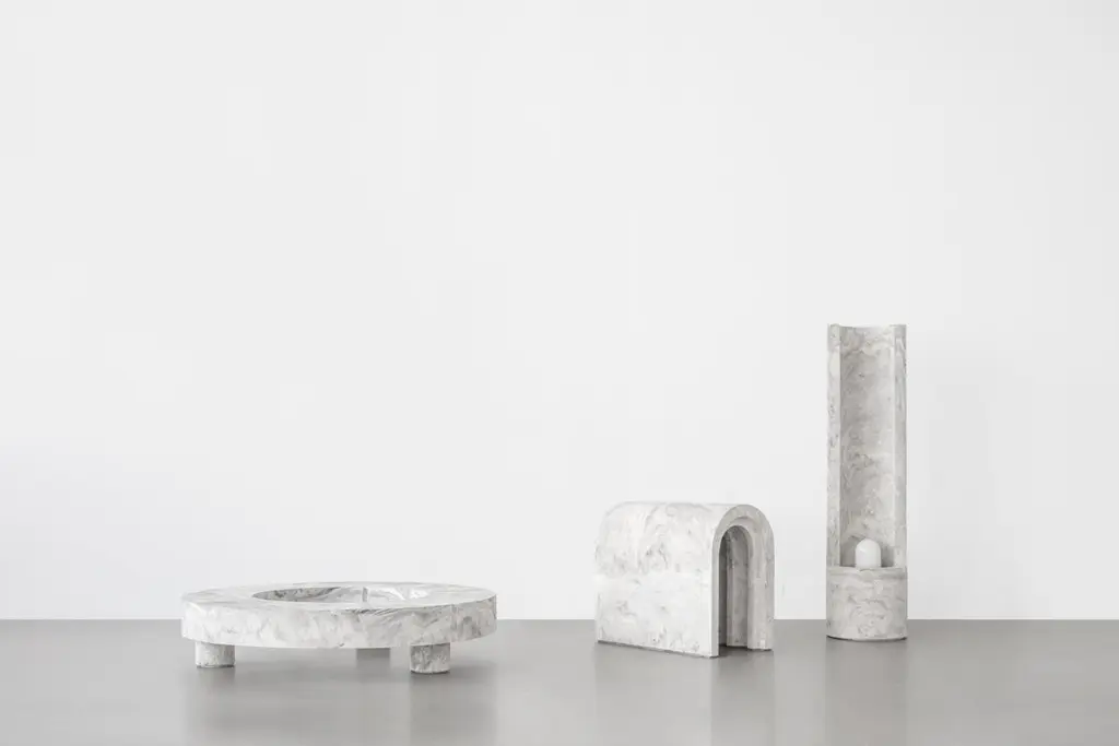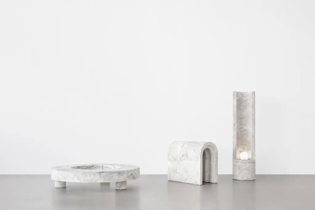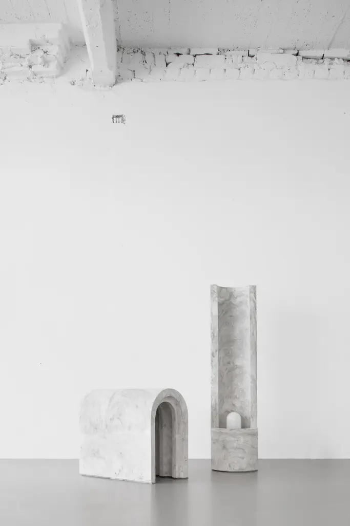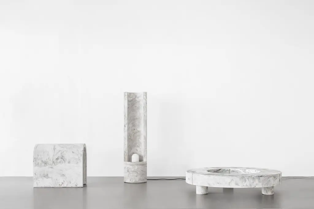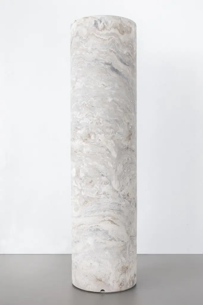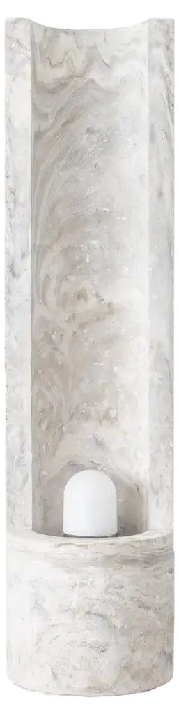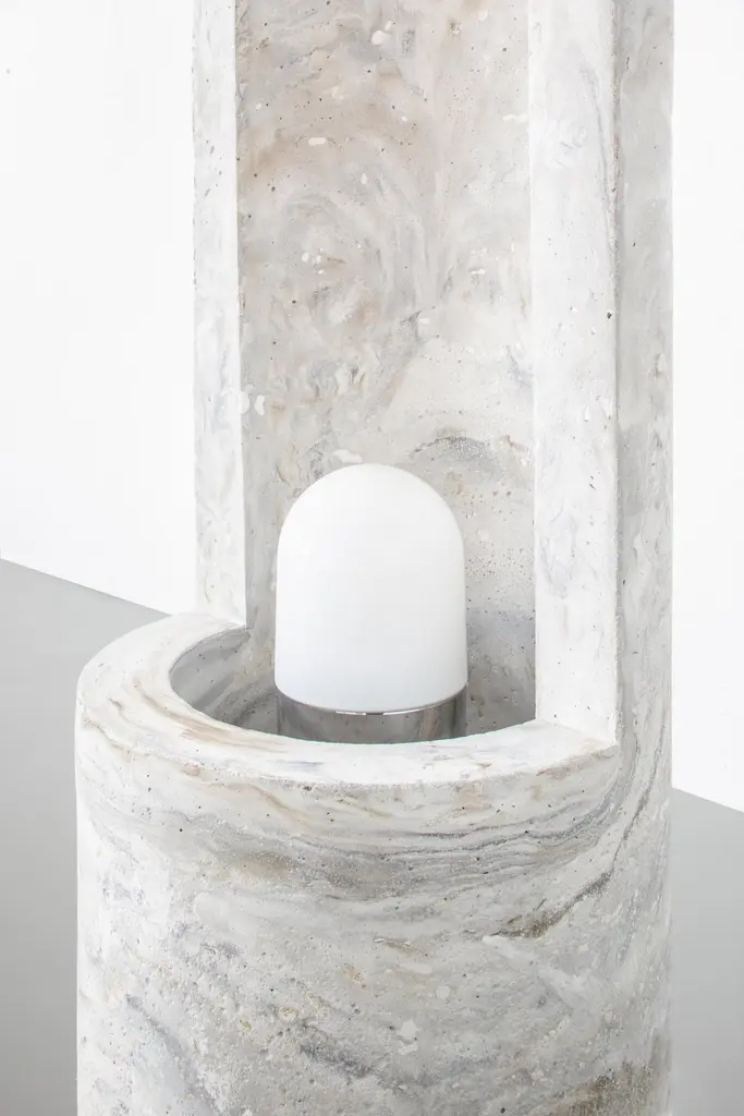 Gestalt bench - Signed by SmentMaterials: Pigmented concrete, Black/Moss MarbledDimensions: H: 120 cm Ø 30 cmLimited Edition of 25Signed and NumberedGestalt lampThe slender, cylinder shaped Gestalt lamp catches the lightwith it’s tall back piece and reflects it on the concrete. Theconcrete complexion gives the lamp a sculptural and staticappearance that is nicely counterbalanced by the subtle,light-colored pigmentation. The mirrored fitting enclosed inthe cilinder layers the light subtly over the asymmetrical tuberesulting in an impression of great depth.Gestalt is the result of mass meeting grace.Frederik Bogaerts and Jochen Sablon take materials under their skin to feel, become and be it. Demolish, deconstruct and reassemble it. To finally gift the cleared material with a design that uplifts but not outshines the material. A SMENT design gives matter the well deserved pedestal that is both functional and sculptural.