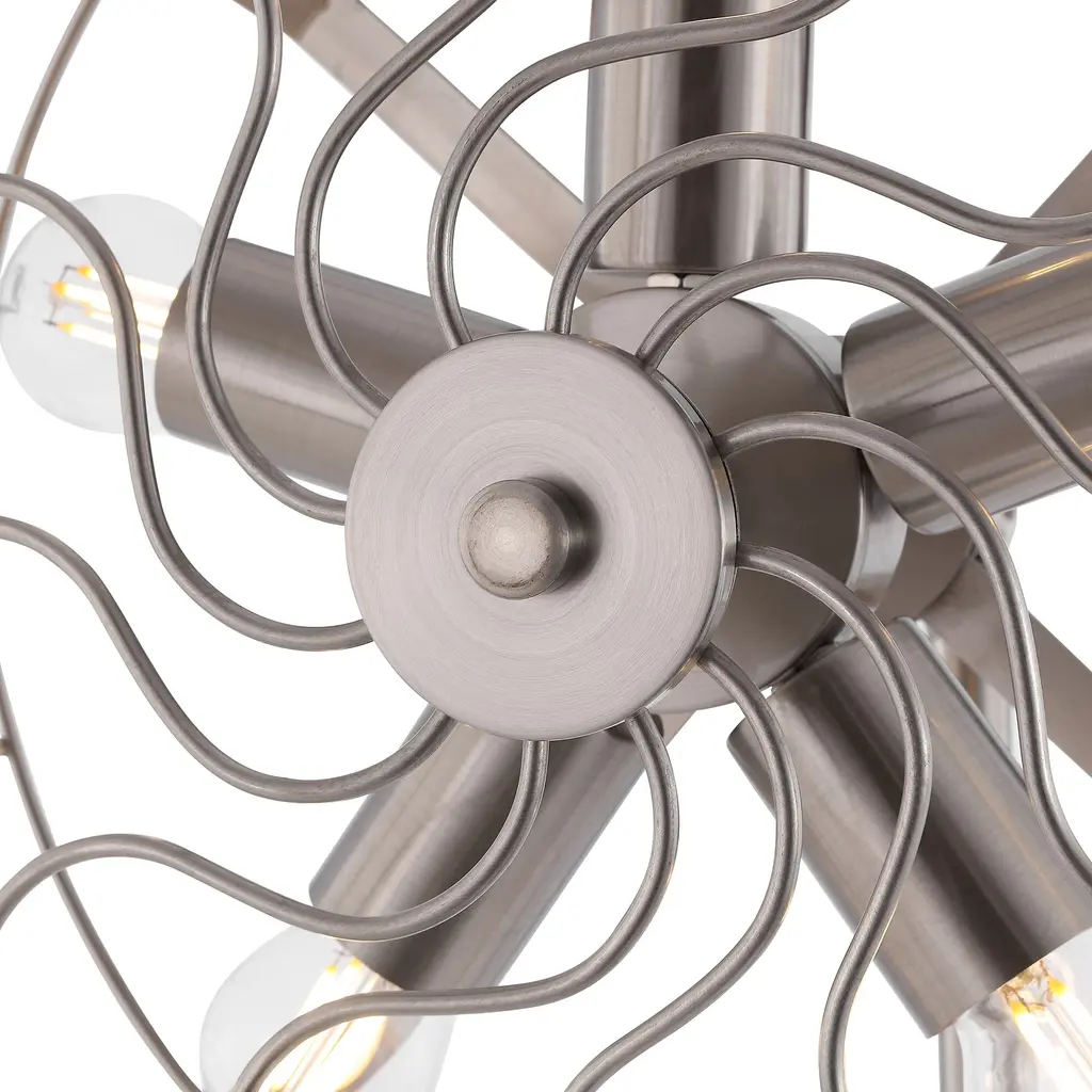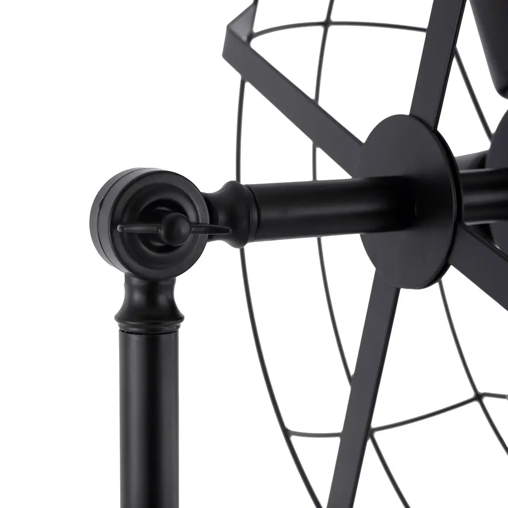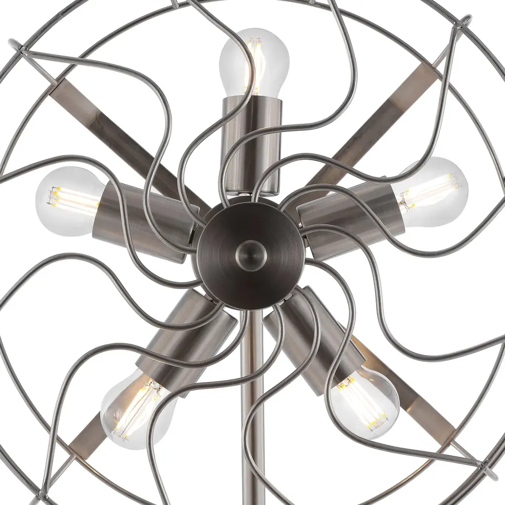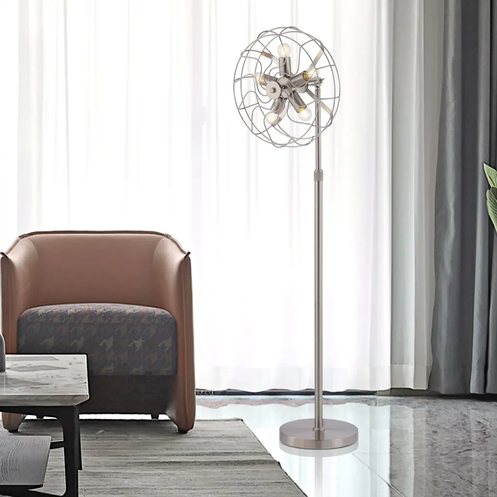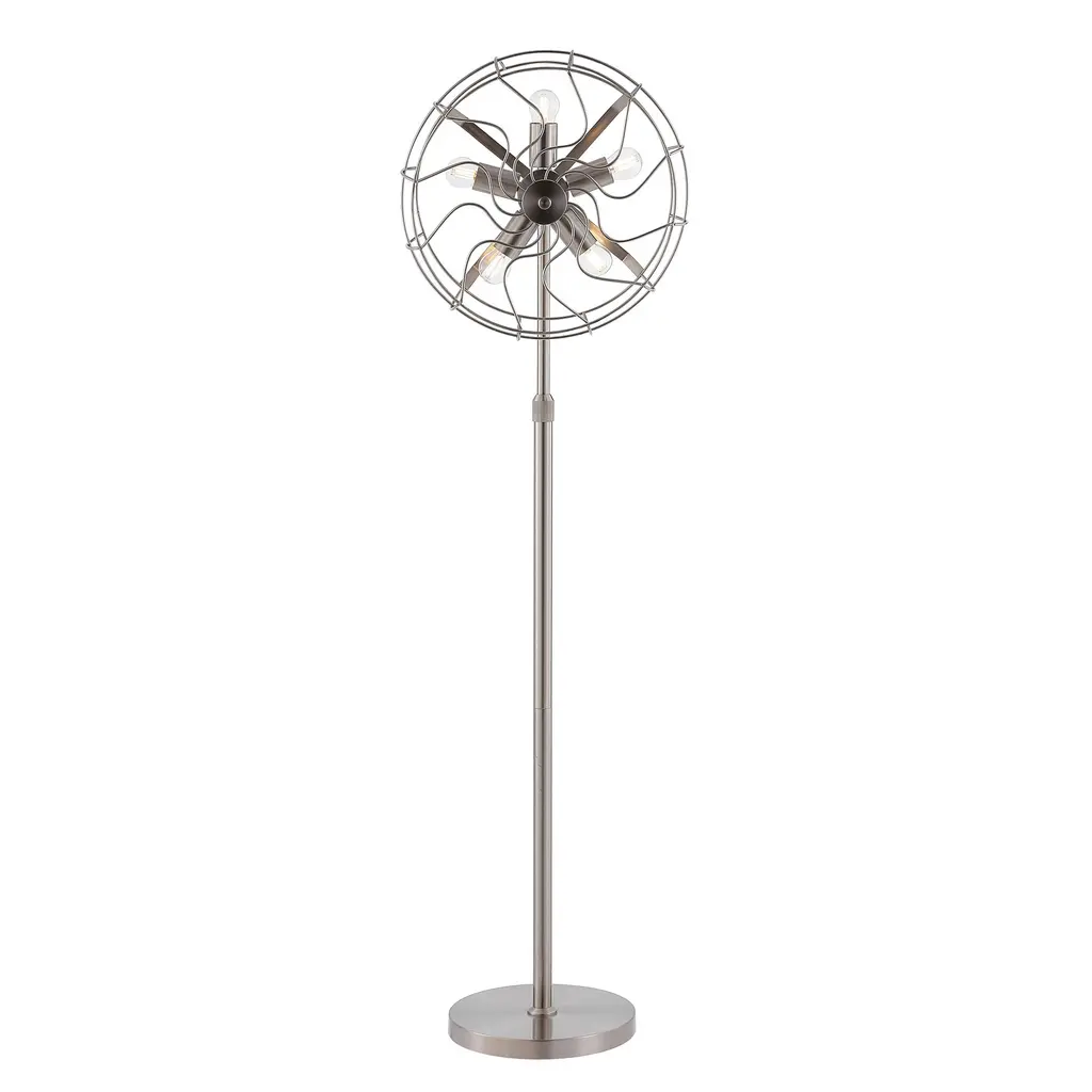 This unique floor lamp is shaped like an antique fan. Its 5 bulb bases are evenly placed between the frames to provide enough light in any spaces. The metal base not only provides enough weight to hold the whole lamp up straight but also gives a modern sense through its classy black matte finish. Features:
