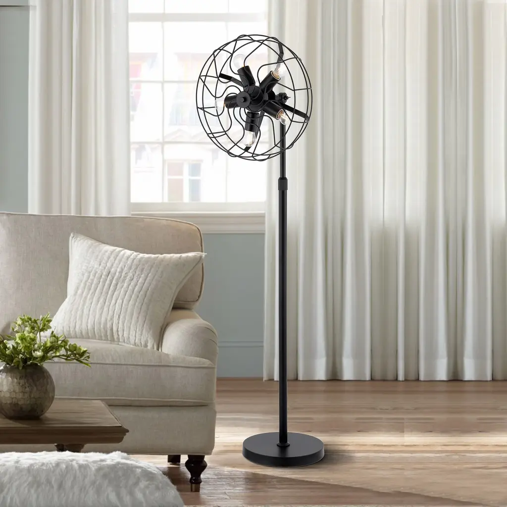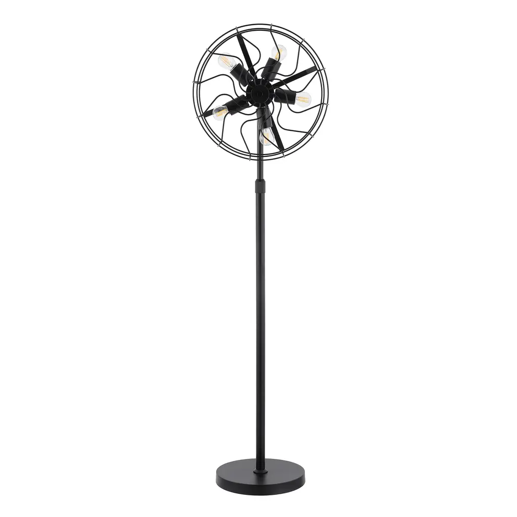 Getledel 62" Industrial 5-Light Caged Floor Lamp - Black