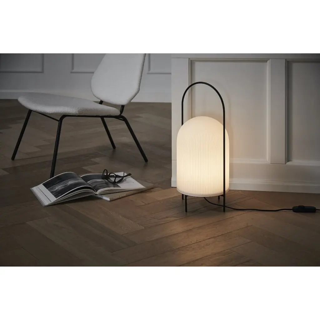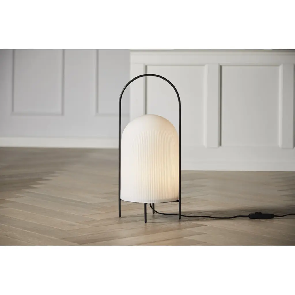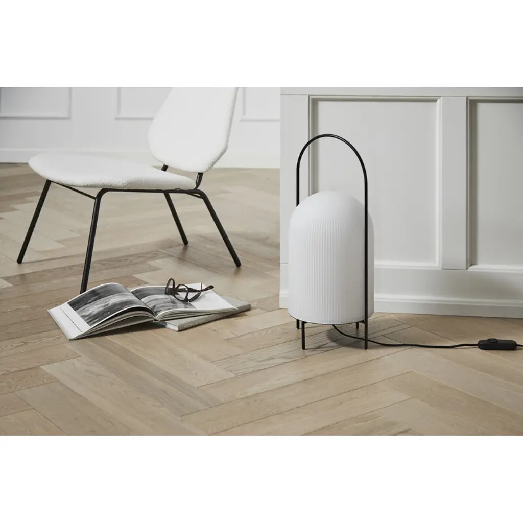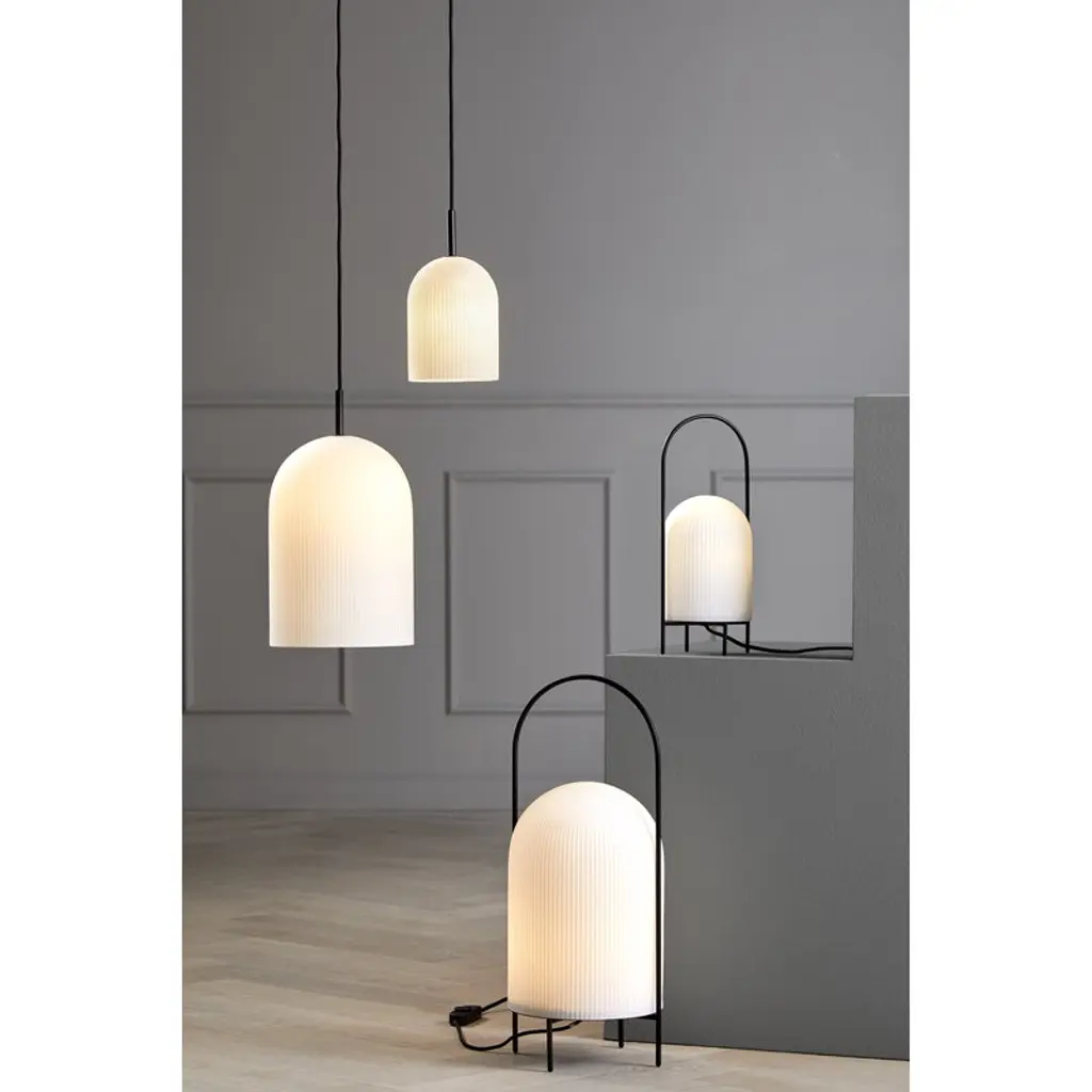 The Ghost floor lamp by Woud is designer Andreas Kowalewski’s interpretation of a classic oil lamp. The Ghost floor lamp comprises a dome-like shade in opal glass and a metal stand with a rod arching over the dome to form a handle for moving the lamp around if needed. The grooves of the shade make it appear like a white cloth has been thrown over the light source – like a friendly ghost.